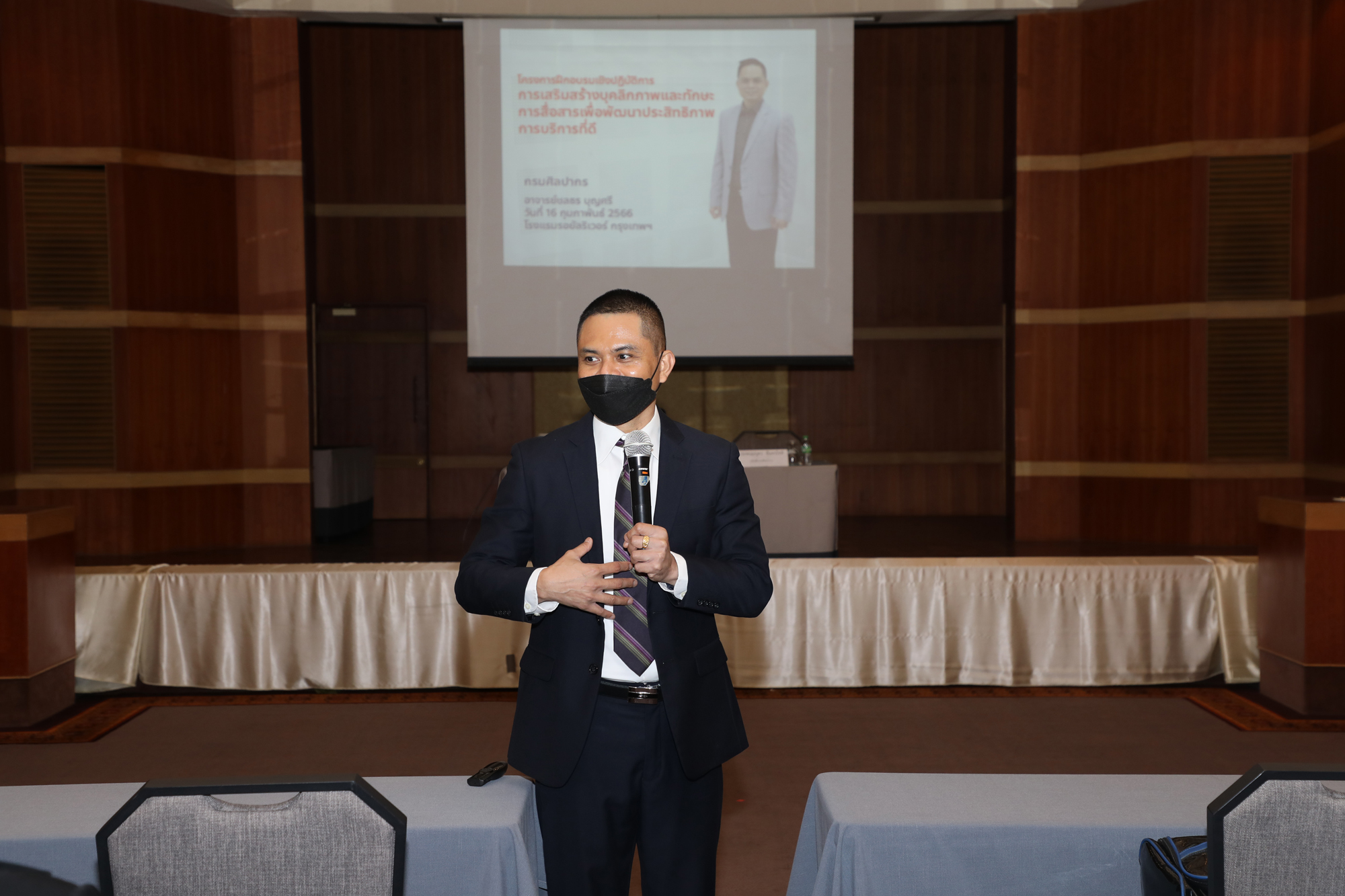 วันพฤหัสบดีที่ ๑๖ กุมภาพันธ์ พุทธศักราช ๒๕๖๖ เวลา ๐๙.๐๐ น. นายพนมบุตร จันทรโชติ อธิบดีกรมศิลปากร เป็นประธานเปิดโครงการฝึกอบรมเชิงปฏิบัติการ "เสริมสร้างบุคลิกภาพและทักษะการสื่อสารเพื่อพัฒนาประสิทธิภาพการบริการที่ดี" โดยมีนางพูนทิพย์ สร้อยสุวรรณ ผู้อำนวยการกลุ่มคลังและพัสดุ รักษาราชการแทนผู้อำนวยการสำนักบริหารกลาง กล่าวรายงานวัตถุประสงค์ ในการจัดการฝึกอบรม โดยมีข้าราชการ เจ้าหน้าที่กรมศิลปากร เข้าร่วมอบรมในครั้งนี้ ณ ห้องประชุม ชั้น ๑๐ โรงแรมรอยัลริเวอร์ กรุงเทพฯ