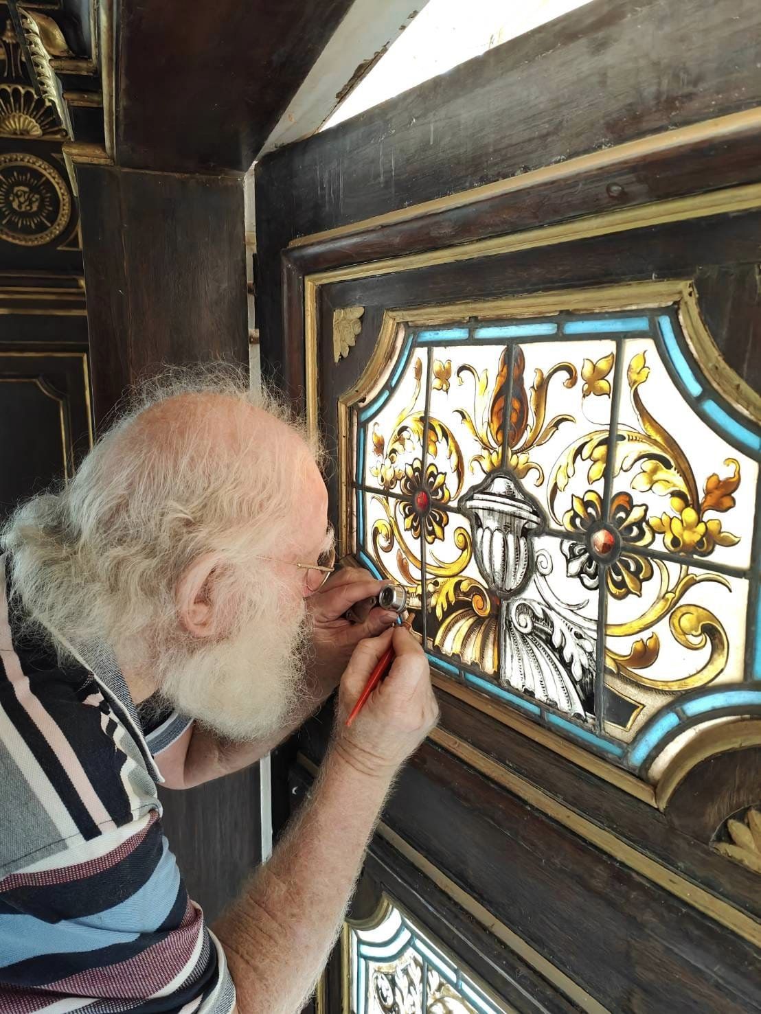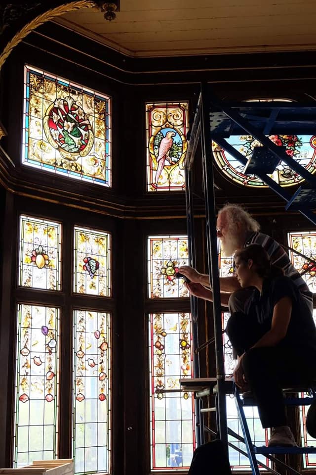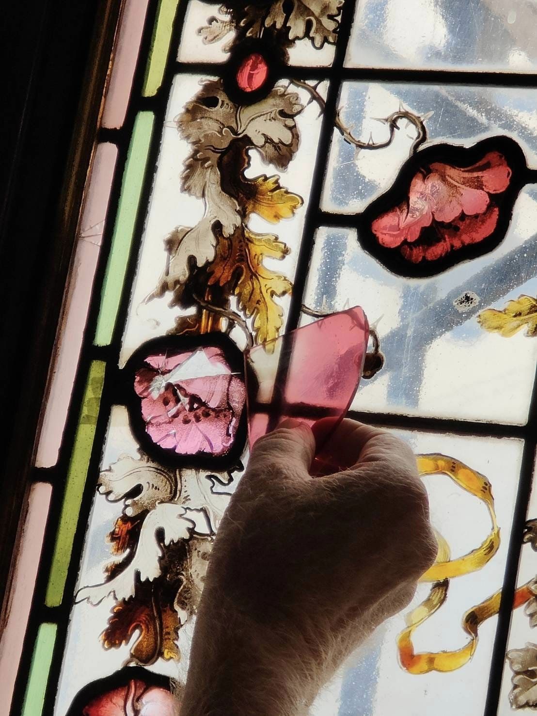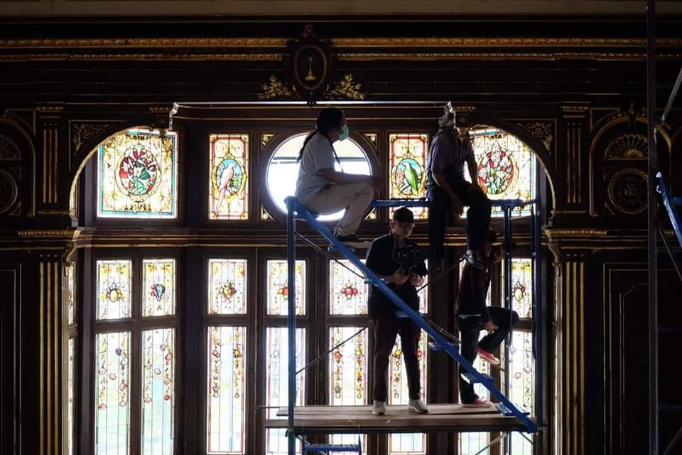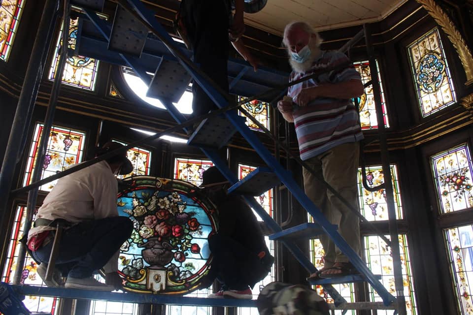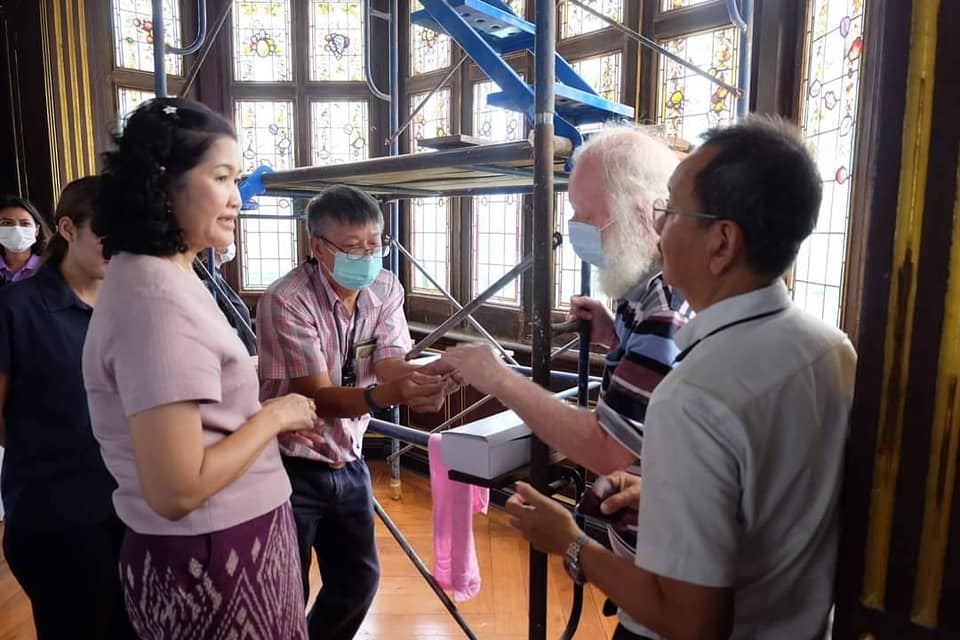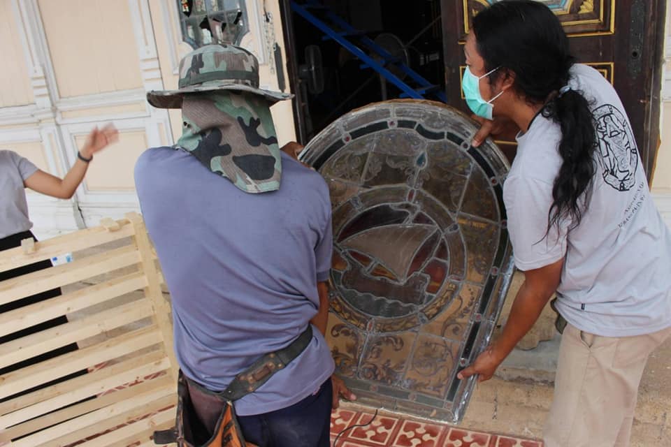 จากการตรวจสอบสภาพของกระจกสเตนกลาสโดยสำนักศิลปากรที่ 3 พระนครศรีอยุธยา และผู้เชี่ยวชาญด้านงานอนุรักษ์กระจกสเตนกลาสจากประเทศออสเตรเลีย สตูดิโอแก้ว จากคณะจิตรกรรมและประติมากรรม มหาวิทยาศิลปากร พบว่า รางตะกั่วซึ่งเป็นโครงสร้างสำคัญที่จะประคองชิ้นกระจกให้ยึดติดบนผนังได้นั้นเสื่อมสภาพลง รวมถึงชิ้นกระจกบางส่วนได้แตกและหลุดหาย จึงทำให้น้ำฝนสามารถไหลผ่านเข้าตัวอาคารได้ และมีโอกาสที่งานศิลปกรรมจะเสืยหายโดยง่ายในอนาคต