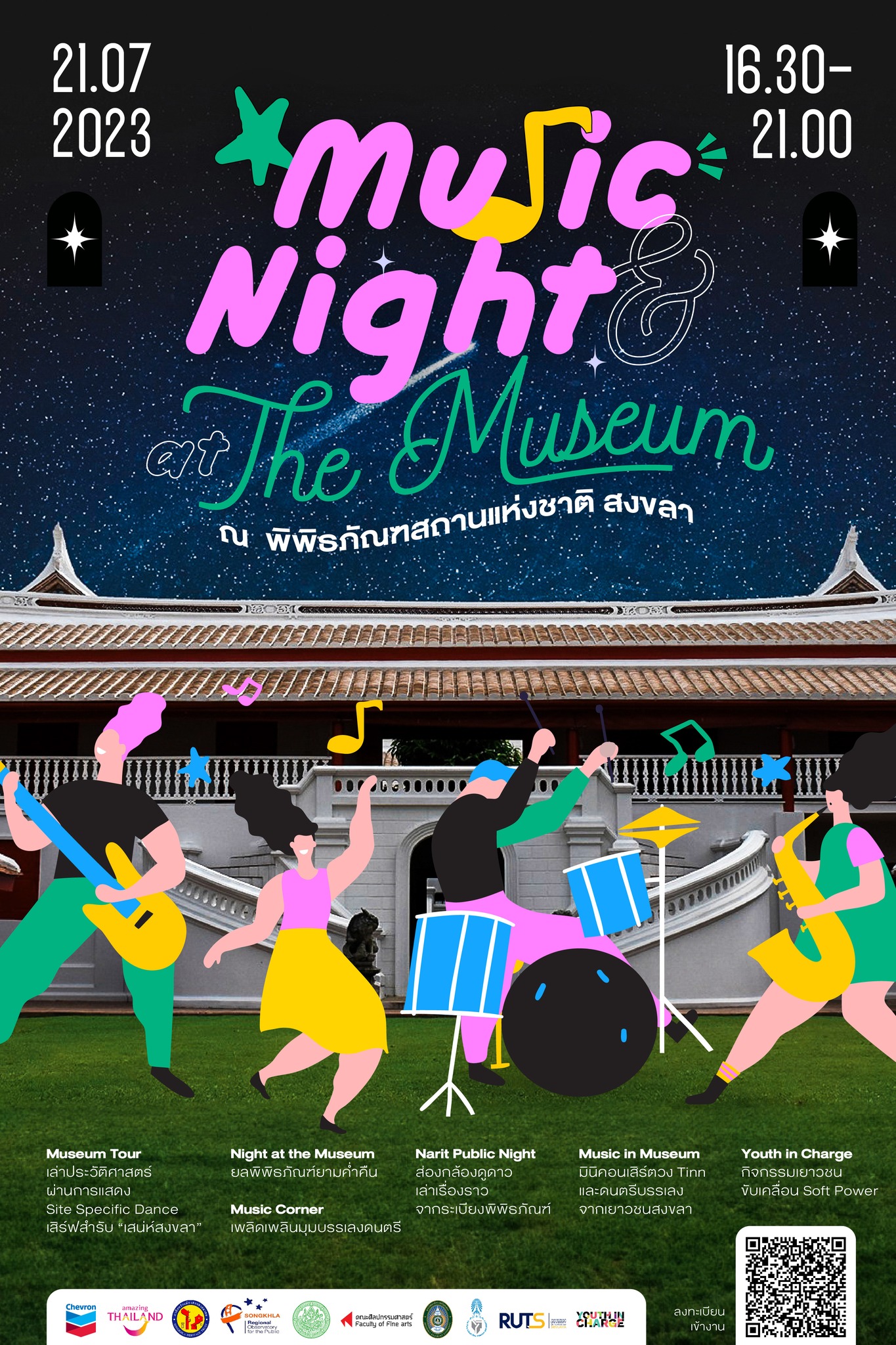 Night at the Museum ยลพิพิธภัณฑ์ยามค่ำคืน พร้อมเพลิดเพลินไปกับมุมบรรเลงดนตรีไทยโดยโรงเรียนมหาวชิราวุธ และดนตรีสากล โดยนักศึกษาหลักสูตรดุริยางคศิลป์ตะวันตก มหาวิทยาลัยราชภัฏ สงขลา ฟรี ตั้งแต่เวลา 19.00น.-21.00น.