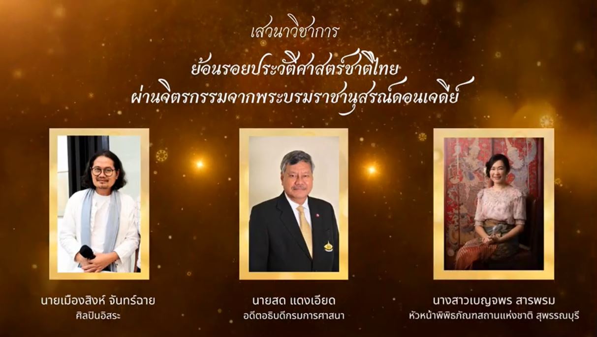 ขอเชิญร่วมฟังการเสวนาทางวิชาการ “ย้อนรอยประวัติศาสตร์ชาติไทยผ่านจิตรกรรมจากพระบรมราชานุสรณ์ดอนเจดีย์” พร้อมชมนิทรรศการพิเศษ