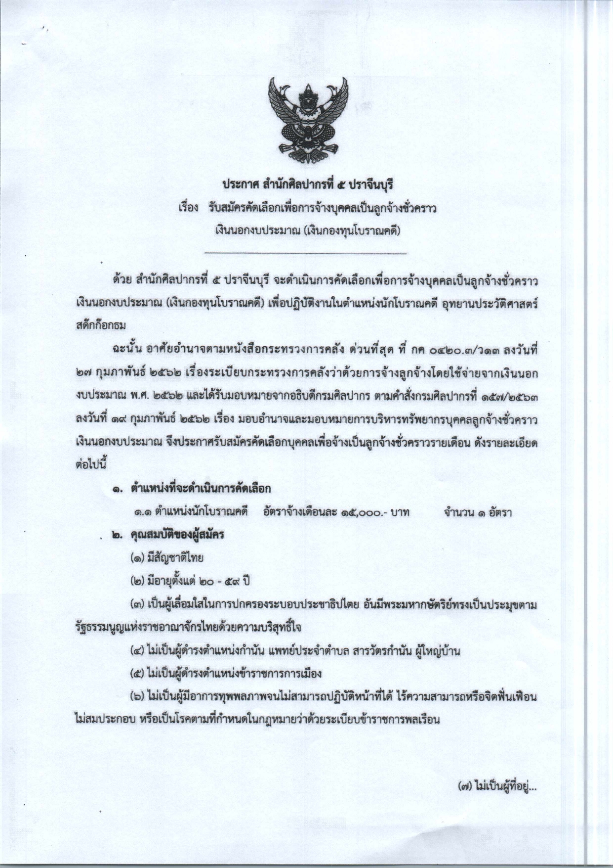 อุทยานประวัติศาสตร์สด๊กก๊อกธม สำนักศิลปากรที่ 5 ปราจีนบุรี กรมศิลปากร กระทรวงวัฒนธรรม ประกาศรับสมัครนักโบราณคดี 1 ตำแหน่ง