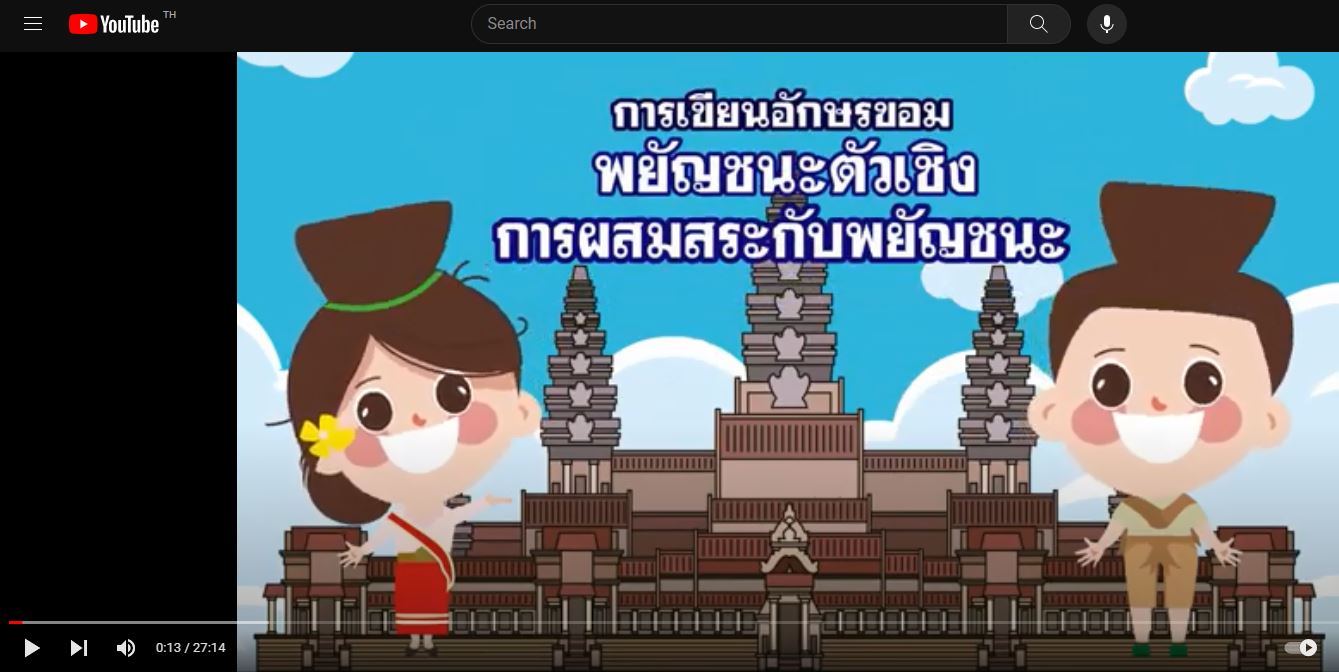 ขอเชิญชมวีดิทัศน์การเรียนการสอนการเขียนอักษรขอม พยัญชนะตัวเชิงการผสมสระกับพยัญชนะ