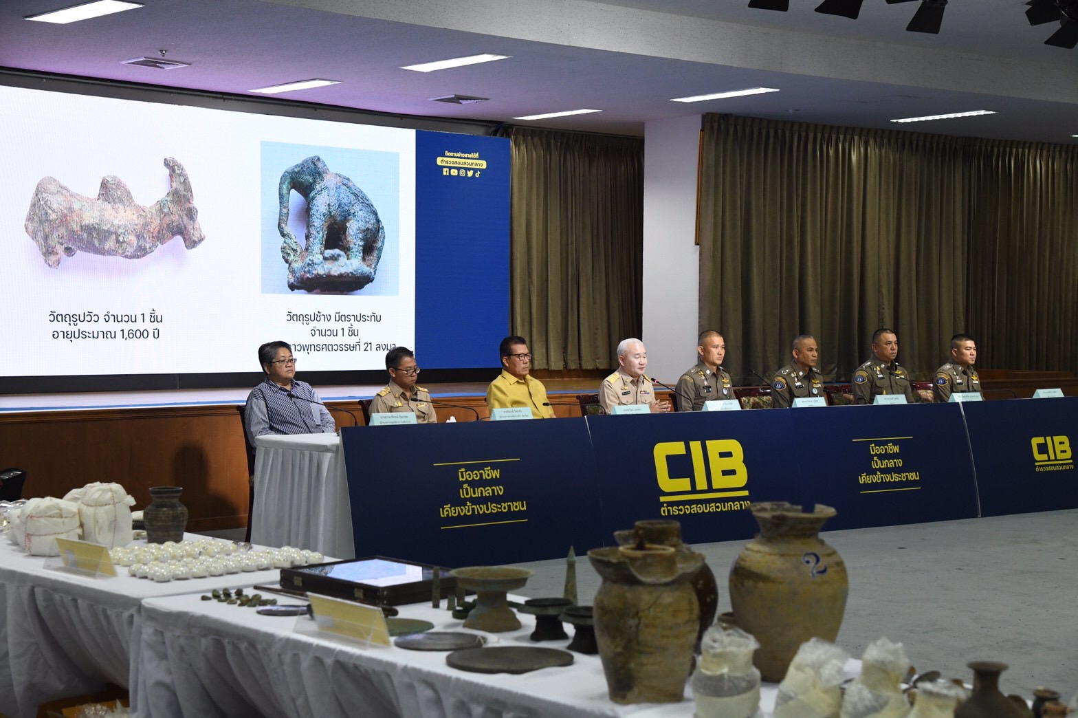 ภาพข่าว ตำรวจสอบสวนกลาง ร่วมกับกรมศิลปากร แถลงข่าวผลการทลายแก๊งนักล่าสมบัติโบราณ พบโบราณวัตถุกว่า ๑,๐๐๐ ชิ้น