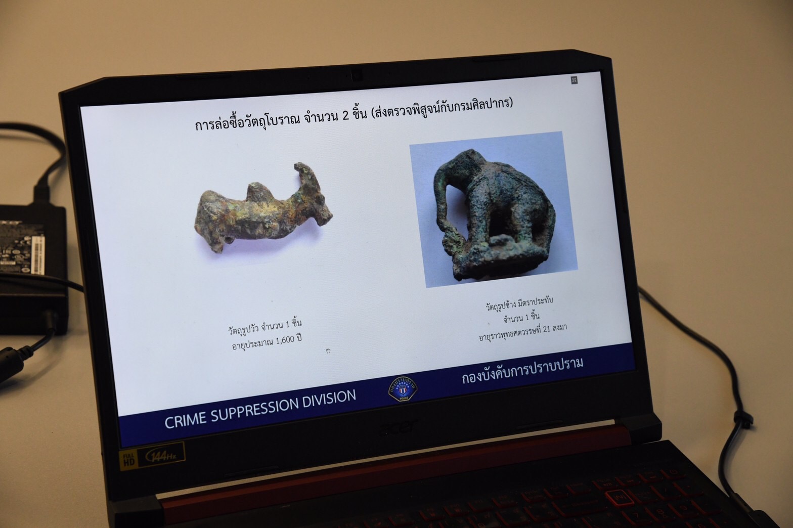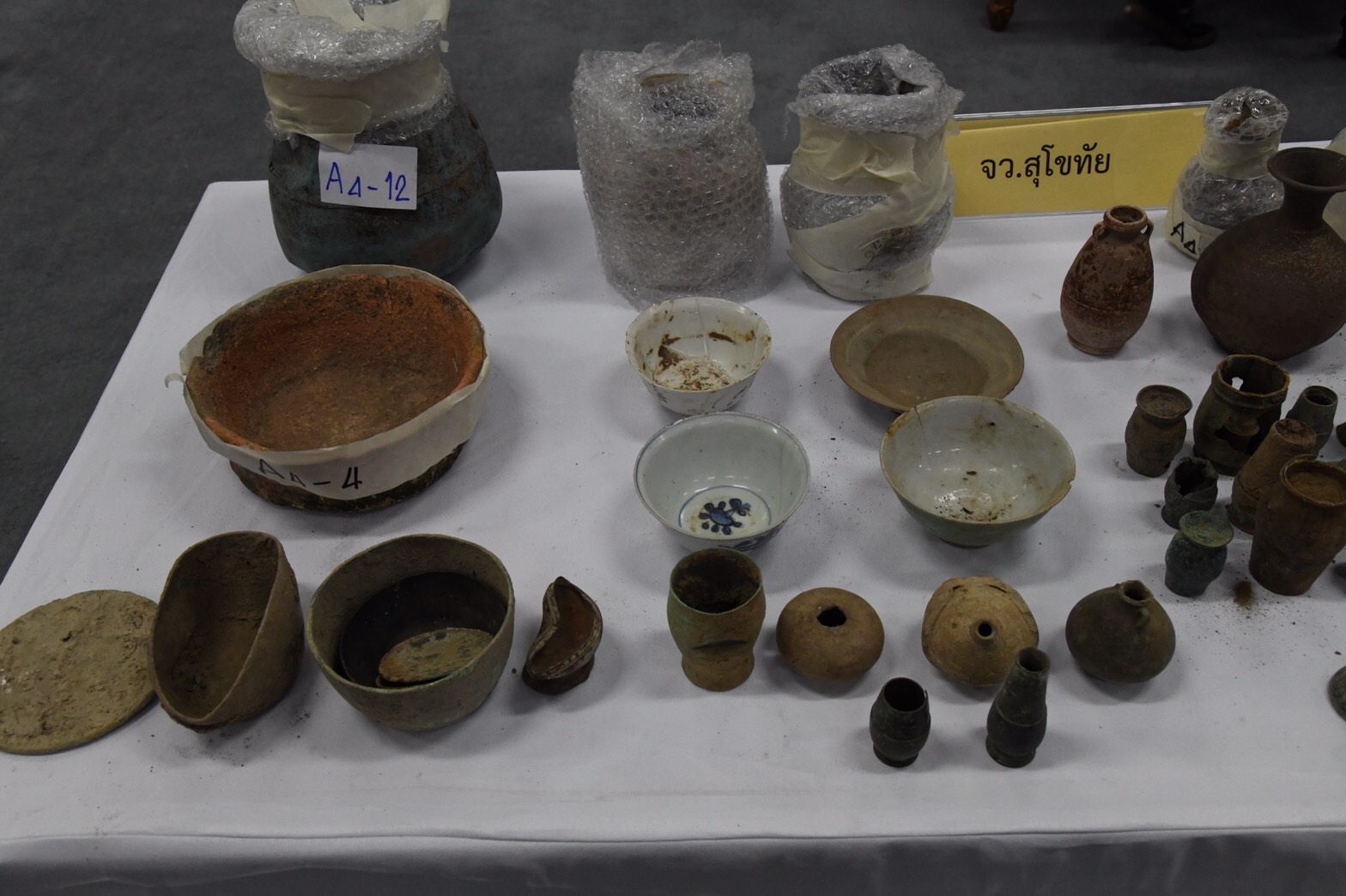 วันจันทร์ที่ ๔ กันยายน ๒๕๖๖ เวลา ๑๐.๓๐ น. ตำรวจสอบสวนกลาง ร่วมกับกรมศิลปากร แถลงข่าวผลการทลายแก๊งนักล่าสมบัติโบราณ พบโบราณวัตถุกว่า ๑,๐๐๐ ชิ้น โดยมี พล.ต.ท.จิรภพ ภูริเดช ผู้บัญชาการตำรวจสอบสวนกลาง, พล.ต.ต.มนตรี เทศขัน ผู้บังคับการกองบังคับการปราบปราม, พ.ต.อ.พัฒนศักดิ์ บุปผาสุวรรณ รองผู้บังคับการกองบังคับการปราบปราม และพ.ต.อ.เอกสิทธิ์ ปานสีทา ผู้กำกับการ ๔ กองบังคับการปราบปราม พร้อมด้วยนายพนมบุตร จันทรโชติ อธิบดีกรมศิลปากร, นายสหวัฒน์ แน่นหนา อดีตอธิบดีกรมศิลปากร, นายชิณวุฒิ วิลยาลัย ผู้อำนวยการสำนักศิลปากรที่ ๗ เชียงใหม่ และนางสาวมาลีภรณ์ คุ้มเกษม ผู้อำนวยการกลุ่มนิติการ กรมศิลปากร ร่วมแถลงข่าวในครั้งนี้ ณ กองบังคับการปราบปราม เบื้องต้นถูกแจ้งข้อหาว่าเป็นผู้เก็บได้ ซื้อโบราณวัตถุหรือศิลปวัตถุ และเบียดบังเอาโบราณวัตถุเป็นของตนเอง และจำหน่ายโดยผิดกฎหมาย สำหรับของกลางที่ตรวจยึดได้ มีทั้งภาชนะดินเผา เข็มสักโบราณ เงินเหรียญลักษณะเกือกม้า ๒ ชิ้น และมีตราประทับ เครื่องประดับโบราณ สะท้อนให้เห็นเส้นทางการค้า ระหว่างจีนตอนใต้และอินเดีย
