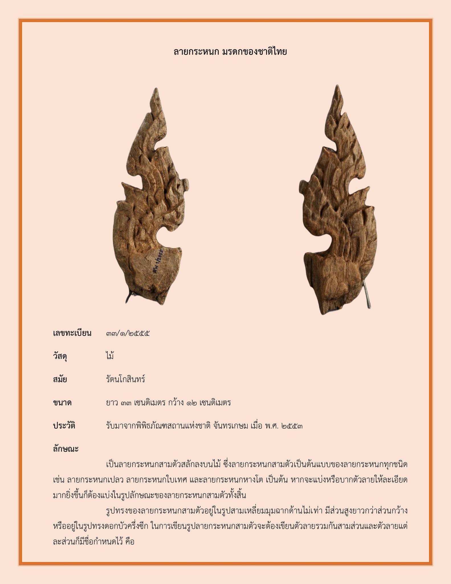 ขอเชิญชมนิทรรศการ "ลายกระหนก ลายไทย มรดกของชาติ" Object of the Month วัตถุจากคลังพิพิธภัณฑฯ สุพรรณบุรี