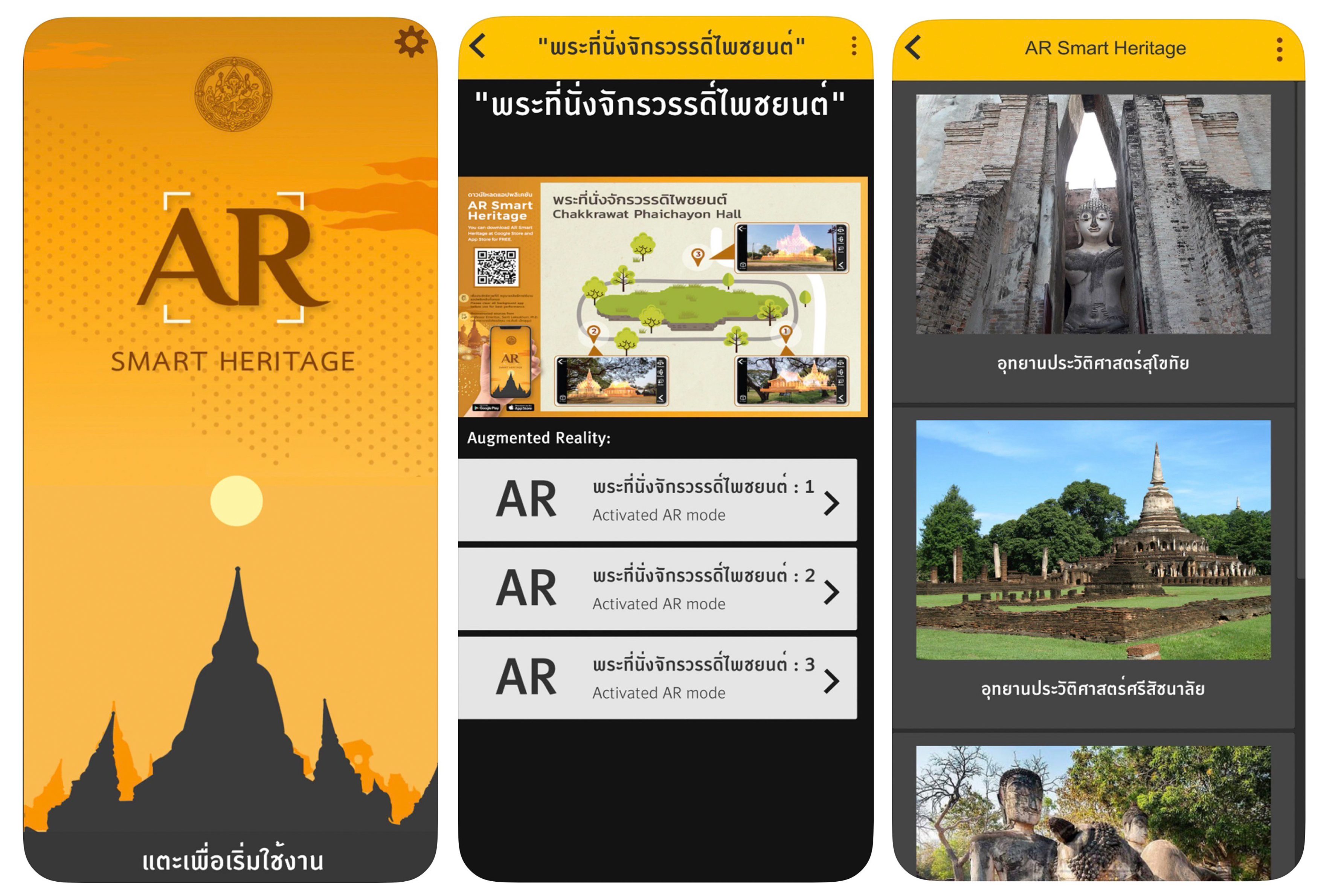 AR Smart heritage เป็นแอพพลิเคชั่นที่สามารถใช้ได้กับโทรศัพท์ Smart Phone และ Tablet บนระบบ Android และ iOS ซึ่งกรมศิลปากร โดยศูนย์เทคโนโลยีสารสนเทศมรดกศิลปวัฒนธรรมได้พัฒนาขึ้น เพื่อสร้างการเรียนรู้และประสบการณ์ใหม่ในการท่องเที่ยวโบราณสถานผ่านสื่อเทคโนโลยีระบบ AR หรือ Augmented Reality ภายใต้แนวความคิดเรื่องการย้อนรอยความรุ่งเรืองในอดีต สู่ความภาคภูมิใจในปัจจุบัน โดยนำรูปแบบสันนิษฐานโบราณสถานมาผสานเข้ากับโบราณสถานในสถานที่จริง เพื่อให้ผู้เข้าชมได้จินตนาการถึงความรุ่งเรือง ความงดงามของสถาปัตยกรรมไทยและความยิ่งใหญ่แห่งมรดกโลกของไทย ได้แก่ อุทยานประวัติศาสตร์สุโขทัย อุทยานประวัติศาสตร์ศรีสัชนาลัย อุทยานประวัติศาสตร์กำแพงเพชร และอุทยานประวัติศาสตร์พระนครศรีอยุธยา โดยมีรูปแบบสันนิษฐานโบราณสถาน รวมทั้งสิ้น 36 แห่ง ให้ผู้เข้าชมได้สัมผัสกับการชมโบราณสถานในรูปแบบใหม่ได้อย่างเต็มอิ่มและมีอรรถรสมากยิ่งขึ้น ด้วยเทคโนโลยีที่สามารถเข้าถึงได้ง่าย สะดวก ส่งเสริมเพิ่มมูลค่าและคุณค่า ให้แก่แหล่งโบราณสถาน กระตุ้นให้นักท่องเที่ยว ผู้เข้าชมโบราณสถานเรียนรู้ศึกษาเพิ่มเติม เข้าใจในรูปแบบของ โบราณสถานและสถาปัตยกรรมไทยมากยิ่งขึ้น