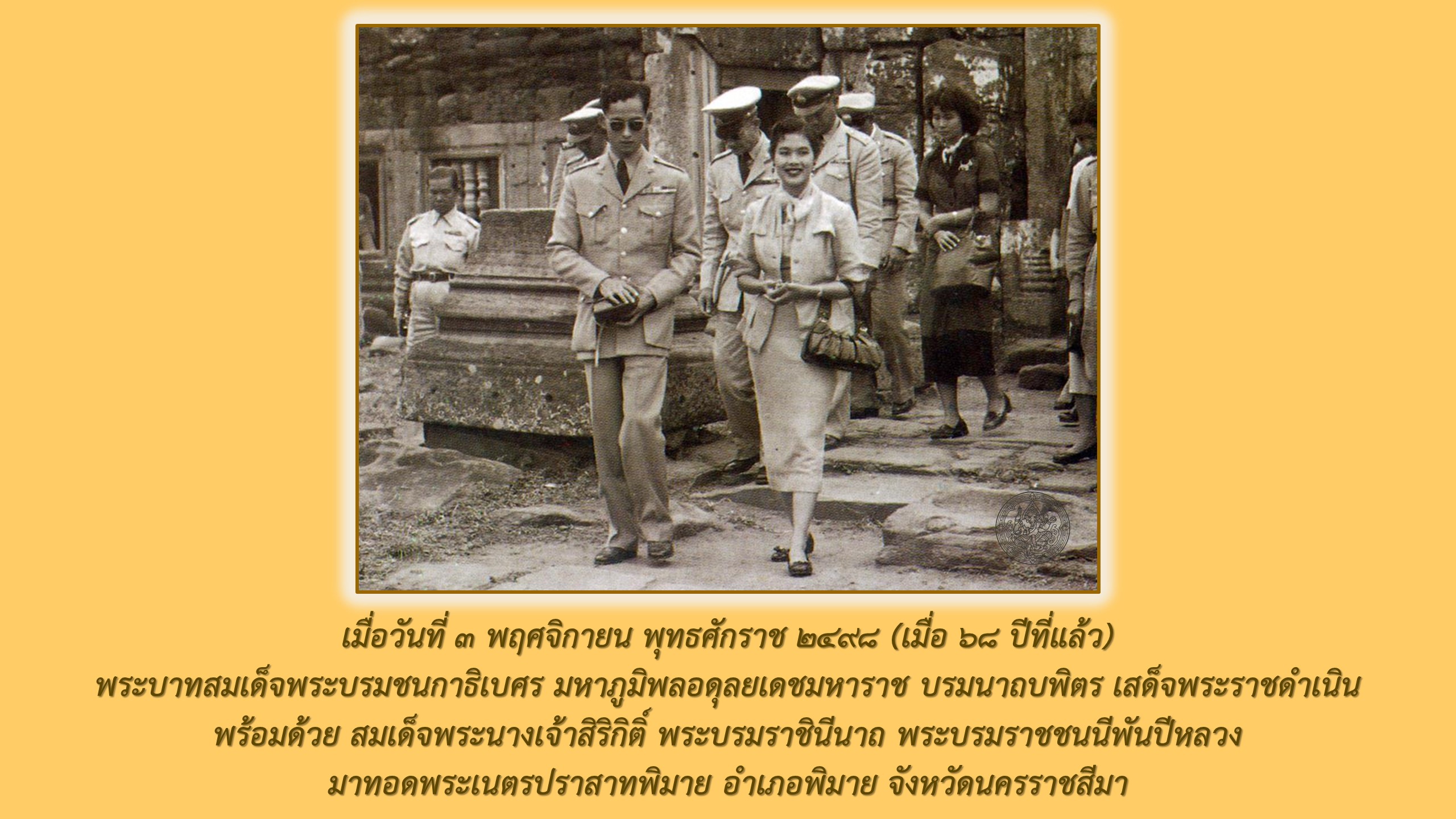 อุทยานประวัติศาสตร์พิมาย ขอเชิญชมนิทรรศการพิเศษเนื่องในวันนวมินทรมหาราช เรื่อง “รำลึก ๖๘ ปี เสด็จประพาส ปราสาทพิมาย”
