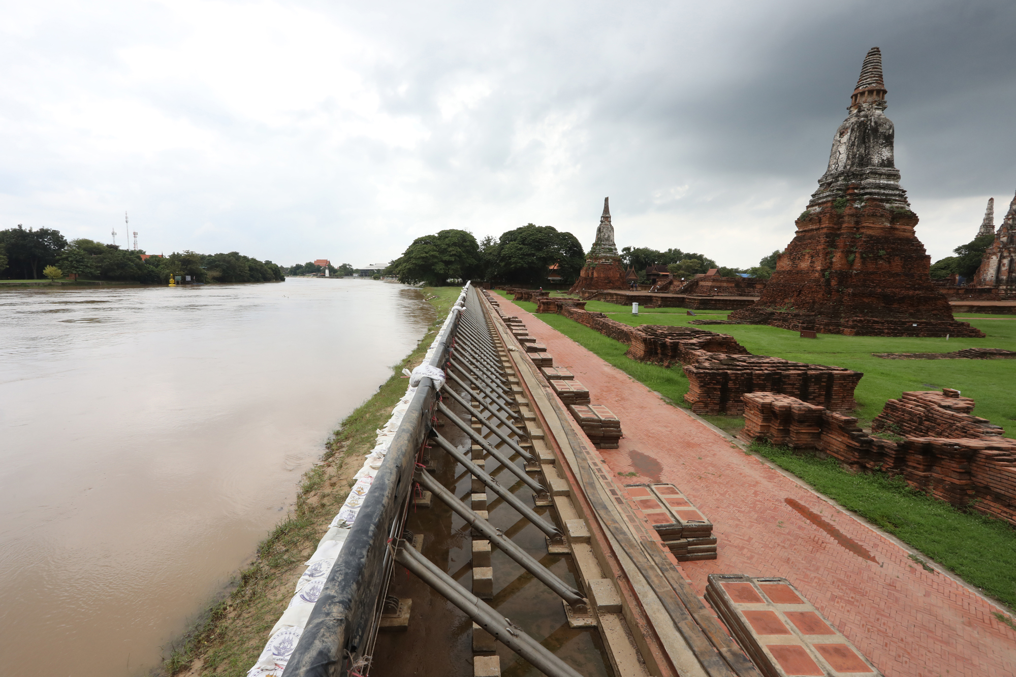 ๑. วัดไชยวัฒนารามแล้ว ซึ่งเป็นโบราณสถานริมแม่น้ำเจ้าพระยาที่มีระดับต่ำที่สุด เพื่อป้องกันเหตุหากมีปริมาณน้ำเพิ่มขึ้นอย่างฉับพลัน ทำให้ระดับน้ำสูงสุดอยู่ต่ำกว่าตลิ่งวัดไชยวัฒนาราม ๗๐ เซนติเมตร