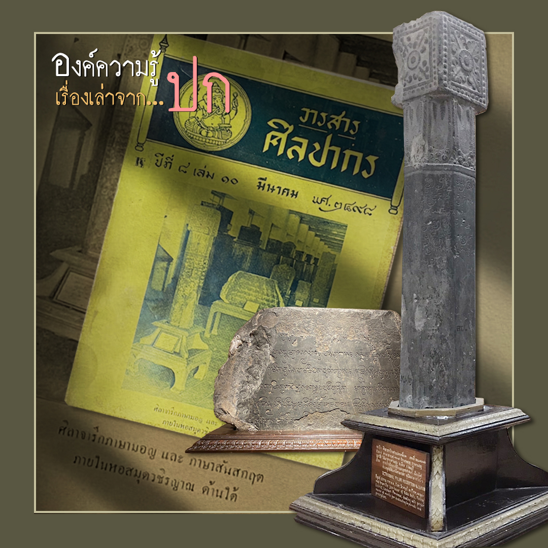 ปีที่ ๘ เล่ม ๑๐ มีนาคม พ.ศ. ๒๔๙๘ เสาศิลาจารึกเสาแปดเหลี่ยม อักษรมอญ พระยาโบราณราชธานินทร์ (พร เดชะคุปต์) พบที่ศาลสูง ลพบุรี ย้ายมารักษาที่อยุธยาพิพิธภัณฑสถาน ภายหลังสมเด็จพระเจ้าบรมวงศ์เธอ กรมพระยาดำรงราชานุภาพ ได้ตรัสสั่งให้ส่งมาไว้ในหอพระสมุด ปัจจุบันอยู่ ชั้น ๔ ห้องเอกสารโบราณ อาคารวชิรญาณ หอสมุดแห่งชาติ