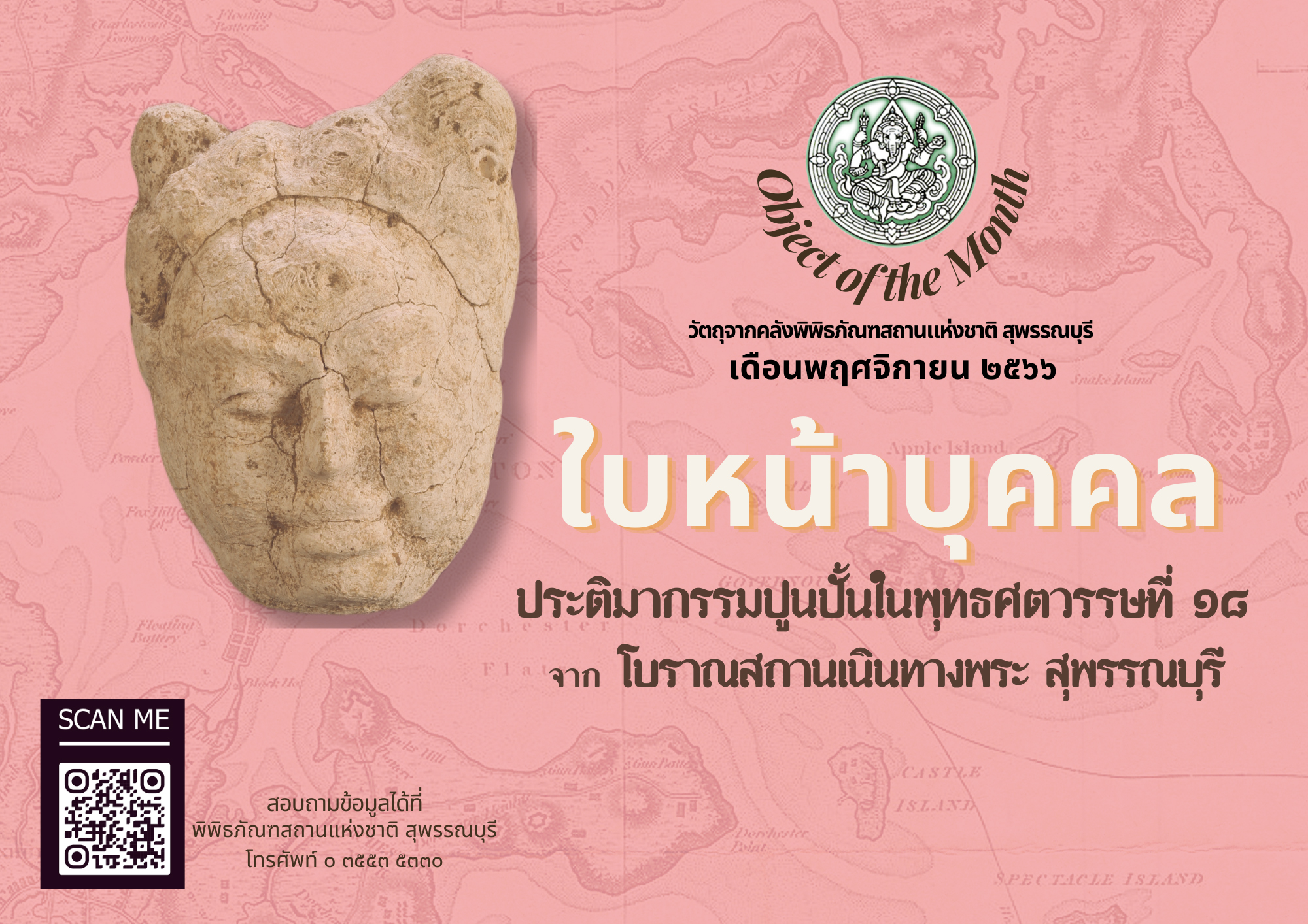 พิพิธภัณฑสถานแห่งชาติ สุพรรณบุรี เชิญชมนิทรรศการหมุนเวียน "Object of the Month" วัตถุจากคลังพิพิธภัณฑสถานแห่งชาติ สุพรรณบุรี ประจำเดือน "พฤศจิกายน" เชิญพบกับ "ใบหน้าบุคคล" ประติมากรรมปูนปั้นในพุทธศตวรรษที่ ๑๘ จัดแสดงให้ชมระหว่างวันที่ ๑ – ๓๐ พฤศจิกายน ๒๕๖๖