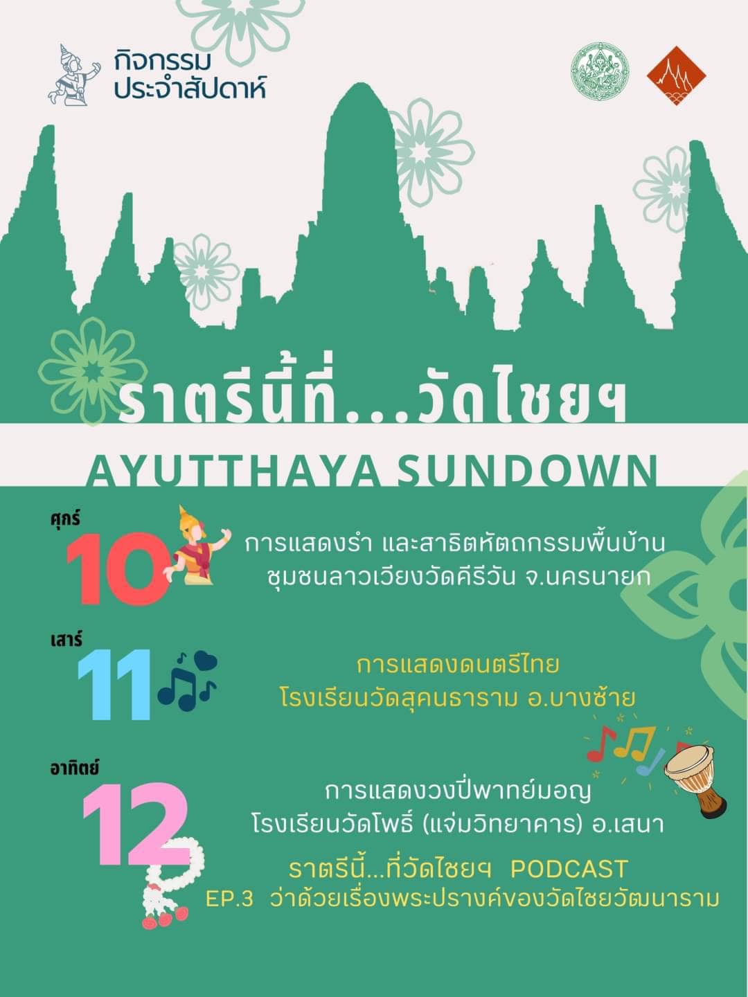 อุทยานประวัติศาสตร์พระนครศรีอยุธยา ชวนร่วมกิจกรรมพิเศษประจำสัปดาห์ ในงาน "ราตรีนี้...ที่วัดไชยฯ" วันที่ 10 - 12 พ.ย.นี้