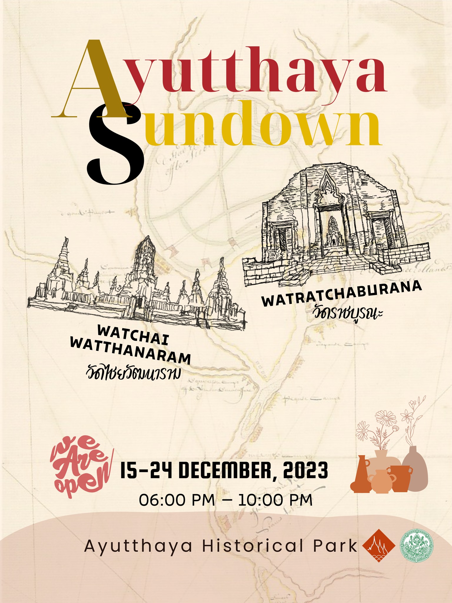 อุทยานประวัติศาสตร์พระนครศรีอยุธยา ขยายเวลาให้เข้าชม "วัดไชยวัฒนาราม" และ "วัดราชบูรณะ" ยามค่ำคืนเพิ่มเติม ระหว่างวันที่ 15 - 24 ธันวาคม เที่ยวชมกันให้ฉ่ำปอด 10 คืน !!! ทั้งนี้ เพื่อเป็นการเฉลิมฉลองการขึ้นทะเบียนมรดกโลก นครประวัติศาสตร์พระนครศรีอยุธยา ครบรอบ 32 ปี ในปีพุทธศักราช 2566