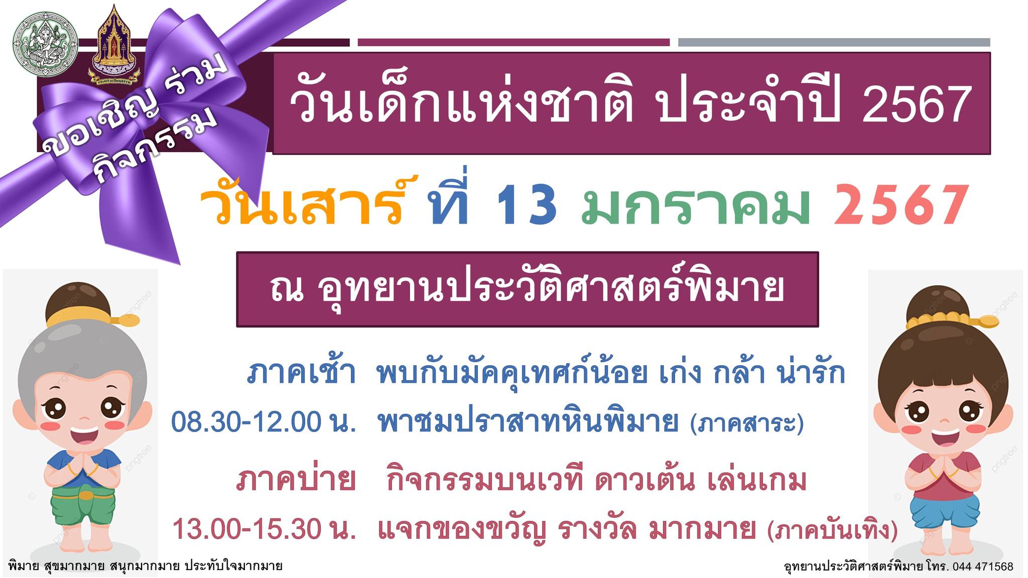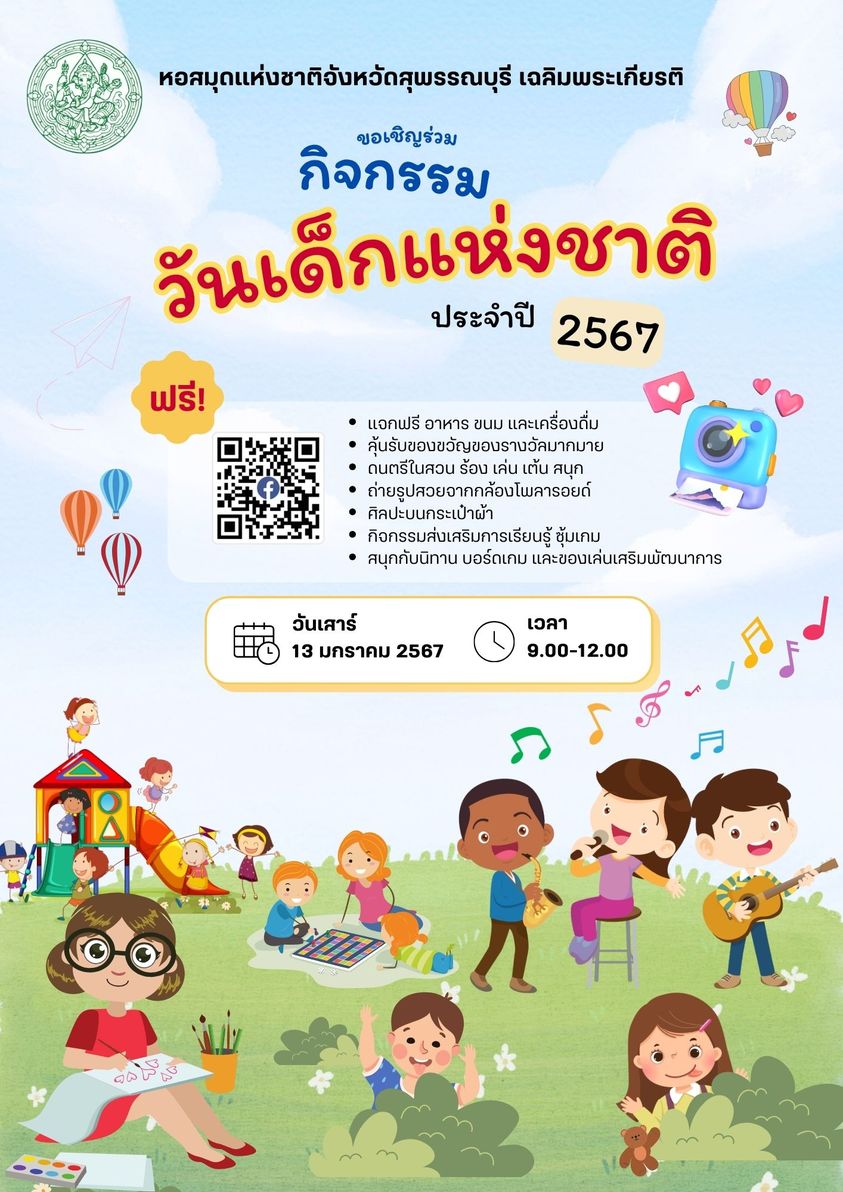 เนื่องในวันเด็กแห่งชาติ ประจำปี 2567 วันเสาร์ที่ 13 มกราคม 2567 กรมศิลปากรเปิดแหล่งเรียนรู้ทางวัฒนธรรมให้เด็กและเยาวชนร่วมกิจกรรมฟรี ทั้งพิพิธภัณฑสถานแห่งชาติ อุทยานประวัติศาสตร์และหอสมุดแห่งชาติทั่วประเทศ โดยได้เตรียมกิจกรรมสำหรับเด็กและเยาวชนที่มีทั้งสาระและความบันเทิง เน้นการเรียนรู้ผ่านกิจกรรมที่สร้างความสนุกสนานและหลากหลาย เพื่อให้ได้รับความรู้และเกิดความคิดสร้างสรรค์ เป็นการเปิดประสบการณ์การเรียนรู้นอกห้องเรียน ปลูกจิตสำนึกด้านการอนุรักษ์มรดกศิลปวัฒนธรรมของชาติ
