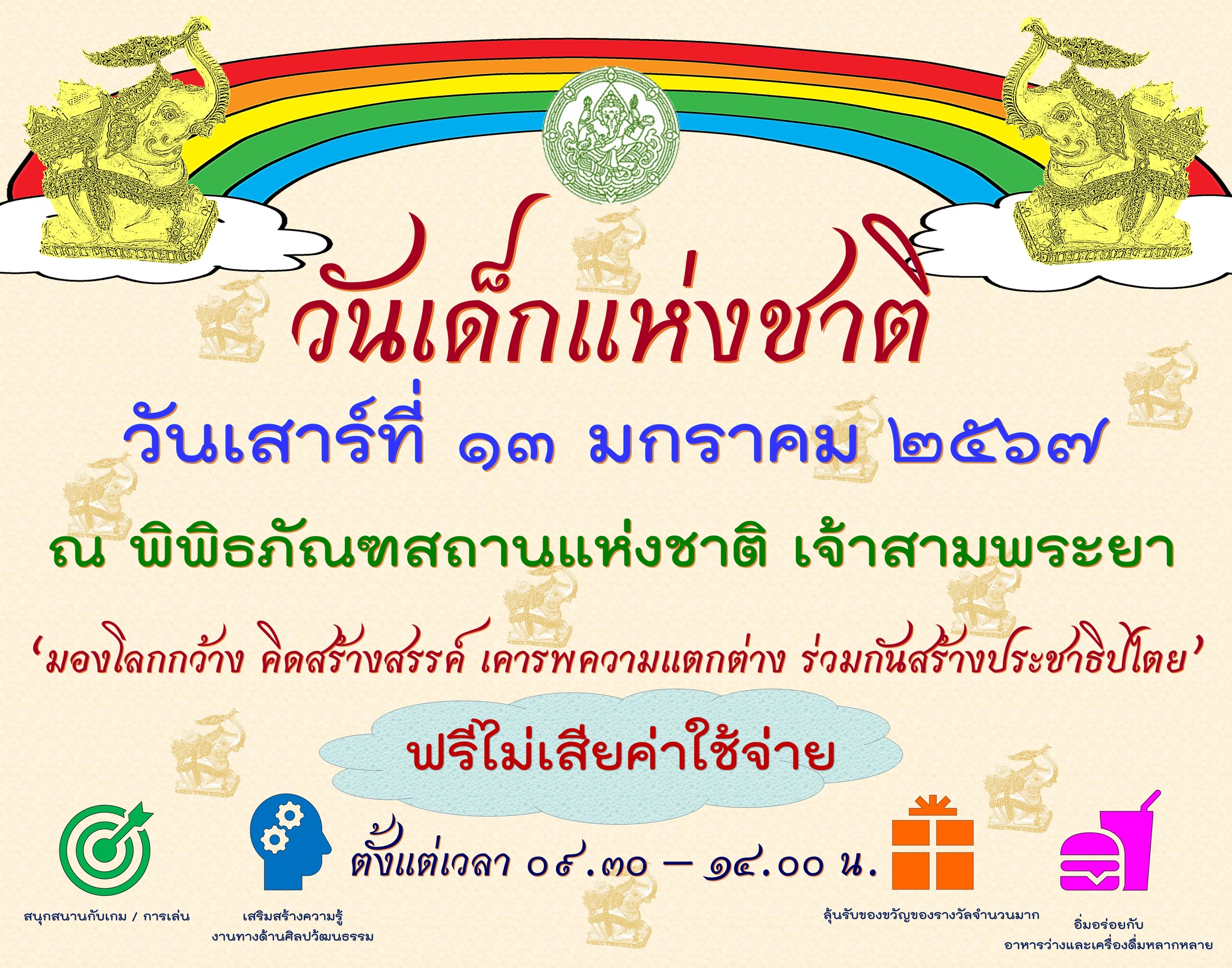 กรมศิลปากรเชิญชวนเด็กๆ ร่วมกิจกรรมวันเด็กแห่งชาติ 2567 ณ แหล่งเรียนรู้ทางวัฒนธรรมในสังกัดทั่วประเทศ
