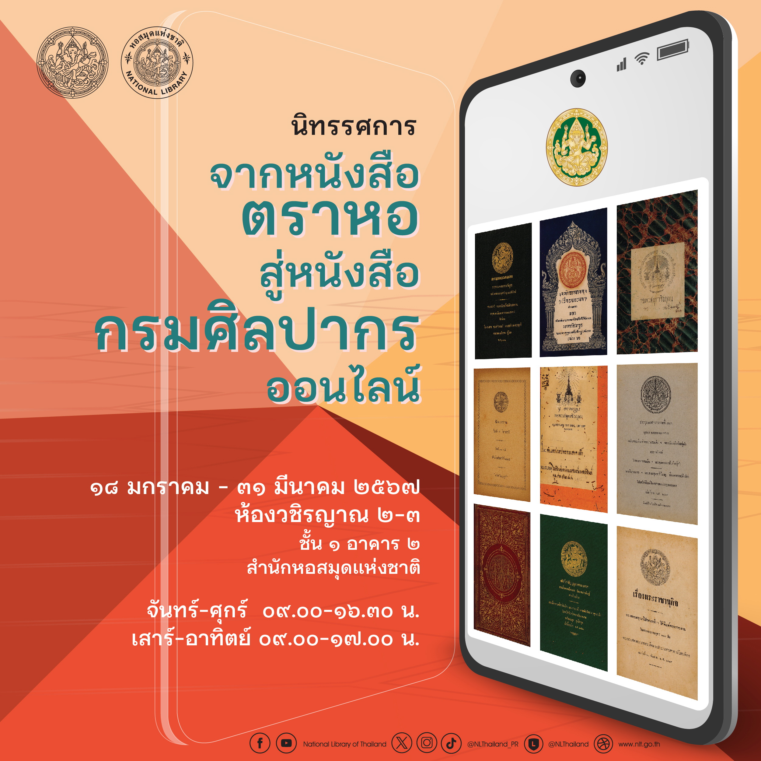 สำนักหอสมุดแห่งชาติ ขอเชิญชมนิทรรศการหมุนเวียน เรื่อง "จากหนังสือตราหอสู่หนังสือกรมศิลปากรออนไลน์"