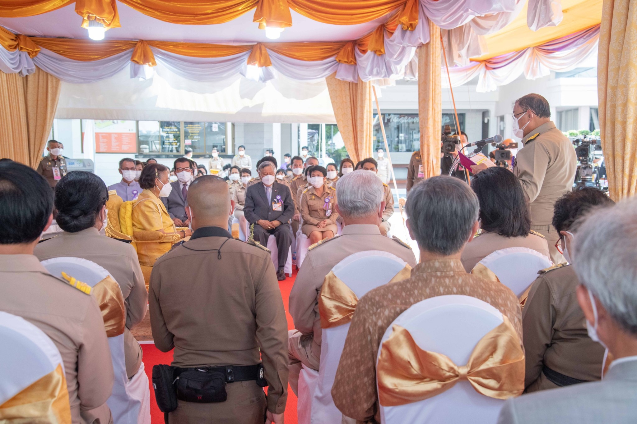 นายเสริมศักดิ์ พงษ์พานิช รัฐมนตรีว่าการกระทรวงวัฒนธรรม กราบบังคมทูลรายงานวัตถุประสงค์การจัดนิทรรศการฯ และขอพระราชทานพระราชานุญาตทูลเกล้าทูลกระหม่อมถวายแผ่นทองคําจารึกพระราชสมัญญา “พระอัครราชูปถัมภิกาการจดหมายเหตุไทย” (พระ-อัก-คะ-ระ-รา-ชู-ปะ-ถำ-พิ-กา-การจดหมายเหตุไทย)ด้วยสํานึกในพระมหากรุณาธิคุณที่ทรงมีต่อการจดหมายเหตุไทย นายพนมบุตร จันทรโชติ อธิบดีกรมศิลปากร กราบบังคมทูลเบิกผู้อนุรักษ์มรดกไทยดีเด่นและผู้สนับสนุนการดำเนินงานด้านศิลปวัฒนธรรมของชาติ ประจำปีพุทธศักราช ๒๕๖๗ ได้แก่ พระภิกษุ จำนวน ๕ รูป และบุคคลทั่วไป จำนวน ๓๑ ราย เข้ารับพระราชทานเข็มเกียรติคุณวันอนุรักษ์มรดกไทย จากนั้นเสด็จฯ ไปยังพระที่นั่งศิวโมกขพิมาน ทรงตัดแถบแพรเปิดนิทรรศการ และทอดพระเนตรนิทรรศการพิเศษเนื่องในวันอนุรักษ์มรดกไทย พุทธศักราช ๒๕๖๗ โอกาสนี้ ทรงเขียนไปรษณียบัตรที่ระลึก จำนวน ๒ แผ่น และทรงหย่อนไปรษณียบัตรลงในตู้ไปรษณีย์ด้วย
