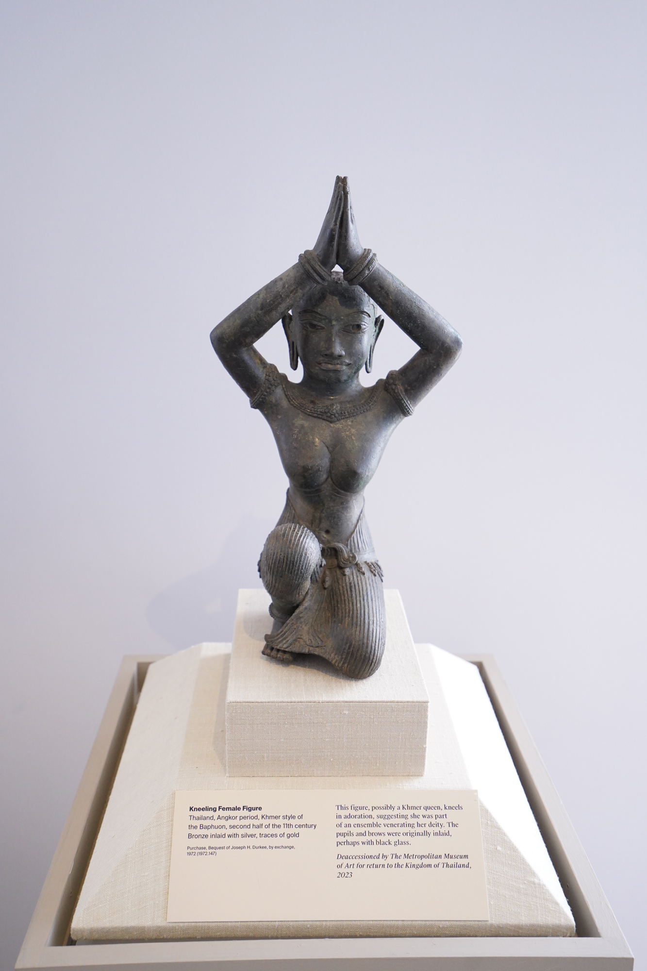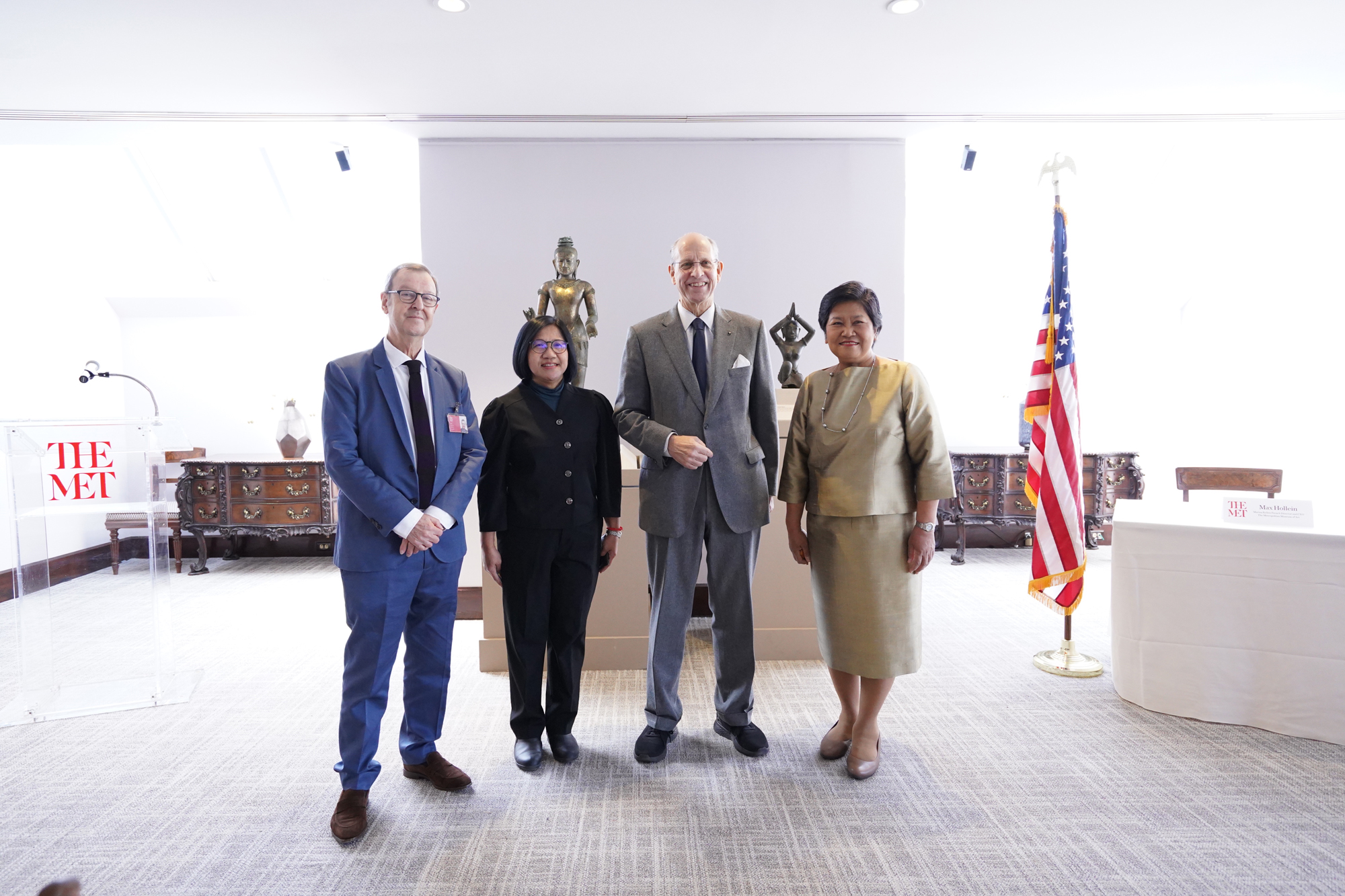 นายเสริมศักดิ์ พงษ์พานิช รัฐมนตรีว่าการกระทรวงวัฒนธรรม เปิดเผยว่า สืบเนื่องจากพิพิธภัณฑ์ศิลปะเมโทรโพลิทัน (The MET) สหรัฐอเมริกา แจ้งความประสงค์ส่งคืนโบราณวัตถุประติมากรรมสำริด 2 รายการ ซึ่งมีหลักฐานว่าถูกนำออกจากประเทศไทยโดยผิดกฎหมาย ที่รู้จักกันในนามโกลเด้นบอย (Golden Boy) และประติมากรรมรูปสตรี จึงมอบหมายให้กรมศิลปากรประสานรายละเอียดขั้นตอนการรับมอบโบราณวัตถุ 2 รายการดังกล่าว ขณะนี้พิพิธภัณฑ์ศิลปะเมโทรโพลิทัน (The MET) ได้แจ้งให้ประเทศไทยส่งผู้เชี่ยวชาญร่วมตรวจสอบโบราณวัตถุที่จะส่งคืน โดยได้มอบหมายให้ นางสาวนิตยา กนกมงคล ผู้อำนวยการสำนักพิพิธภัณฑสถานแห่งชาติ กรมศิลปากร เดินทางไปร่วมตรวจสอบ ในวันที่ 25 เมษายน 2567 เวลา 11.00 น. ตามเวลาท้องถิ่น นครนิวยอร์ก สหรัฐอเมริกา ซึ่งตรงกับเวลา 22.00 น. ตามเวลาประเทศไทย ซึ่งในการนี้จะได้มีการหารือถึงรายละเอียดและกำหนดเวลาในการส่งคืน นอกจากนี้ ยังจะมีการลงนามในบันทึกความเข้าใจระหว่างกรมศิลปากร และ พิพิธภัณฑ์ศิลปะเมโทรโพลิทัน (The MET) เพื่อความร่วมมือทางวิชาการด้านพิพิธภัณฑ์ โดยมีนายพนมบุตร จันทรโชติ อธิบดีกรมศิลปากร และนายแมกซ์ ฮอลเลน ผู้อำนวยการและประธานกรรมการบริหารพิพิธภัณฑ์ศิลปะเมโทโพลิทัน เป็นผู้ลงนามบันทึกความเข้าใจ และมีนางสาวสมใจ ตะเภาพงษ์ กงสุลใหญ่ ณ นครนิวยอร์ก สหรัฐอเมริกา ร่วมเป็นสักขีพยาน