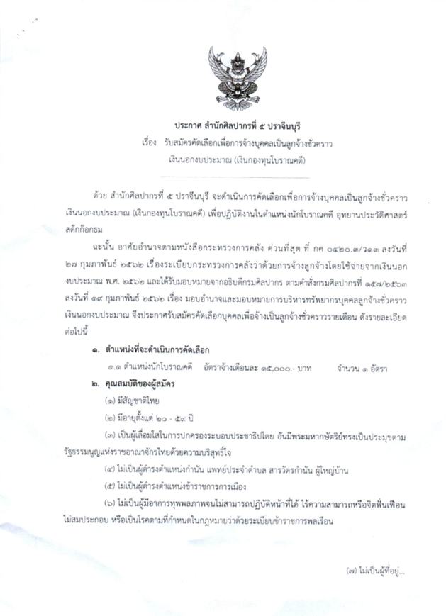 อุทยานประวัติศาสตร์สด๊กก๊อกธม ประกาศรับสมัครนักโบราณคดี 1 ตำแหน่ง เข้าปฏิบัติงาน ณ อุทยานประวัติศาสตร์สด๊กก๊อกธม ไม่จำกัดเพศ วุฒิการศึกษาศิลปศาสตรบัณฑิต สาขาโบราณคดี อัตราค่าจ้าง 15,000 บาท/เดือน เวลาทำงาน 08.00 น. – 17.00 น. ทำงานวันจันทร์ - วันศุกร์