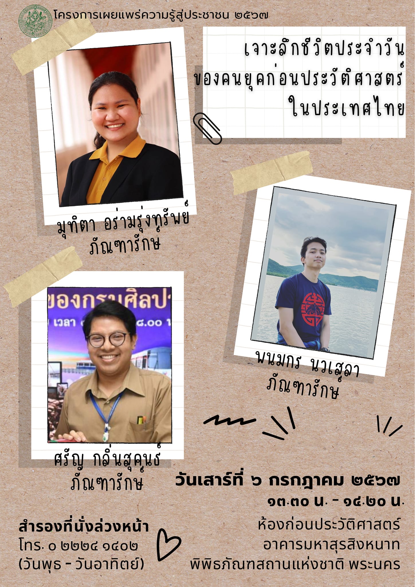 ขอเชิญร่วมกิจกรรมโครงการเผยแพร่ความรู้สู่ประชาชน ประจำปี ๒๕๖๗ "ย้อนอดีต : เทคนิคการทำลูกปัดหินและสิ่งทอสมัยโบราณ"
