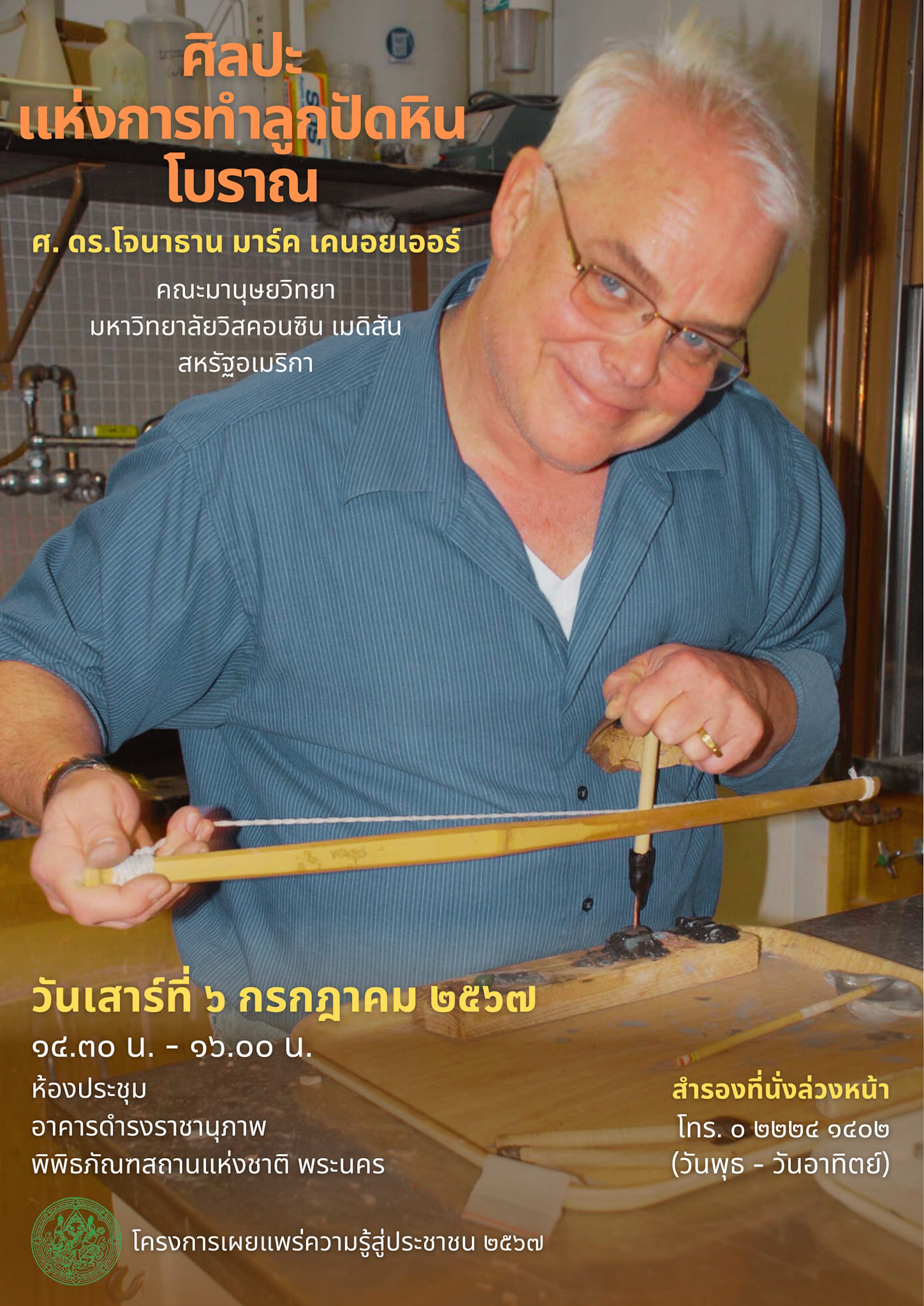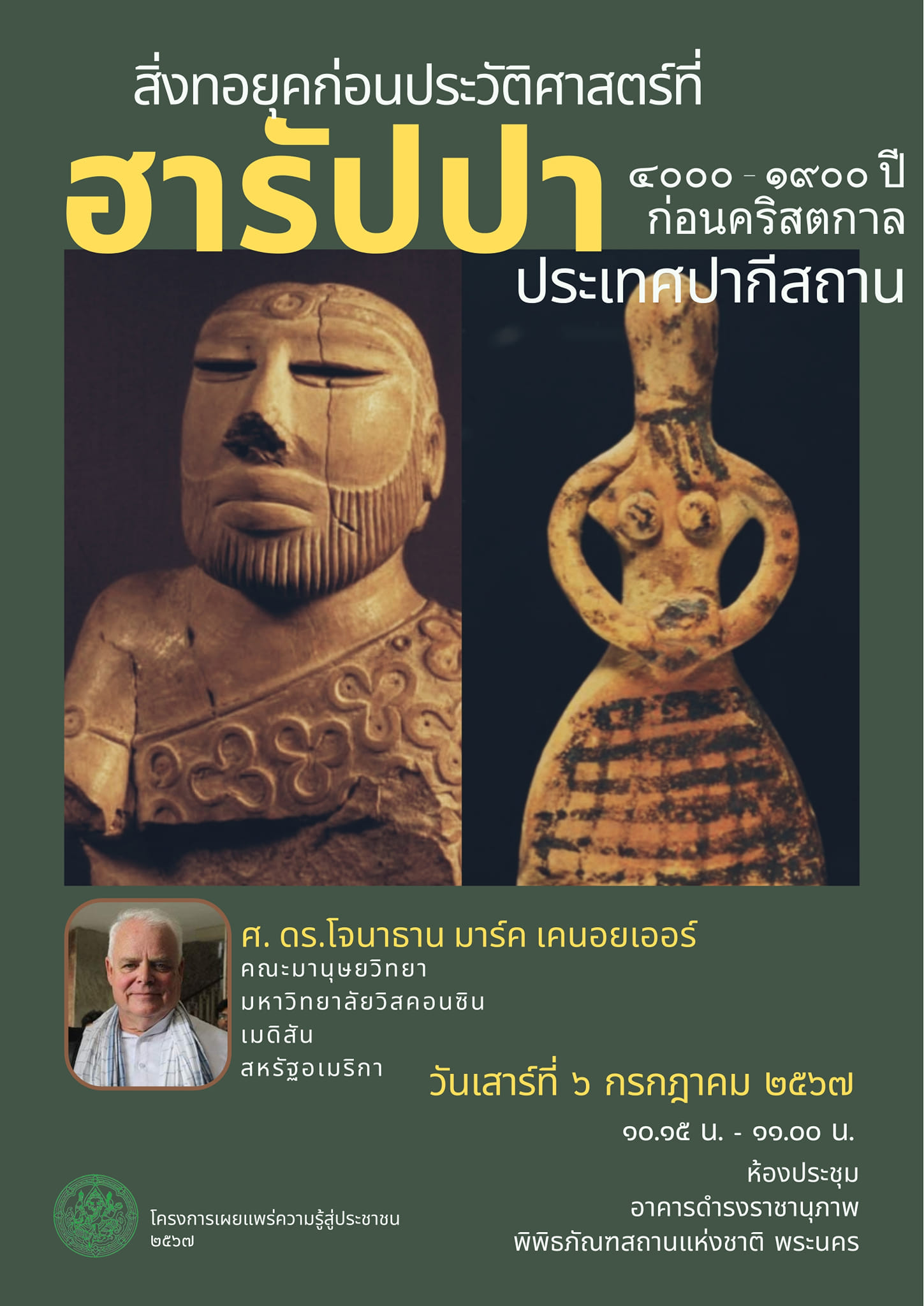 - การบรรยายทางวิชาการ เรื่อง “สิ่งทอยุคก่อนประวัติศาสตร์ที่ฮารัปปา ประเทศปากีสถาน (๔๐๐๐ - ๑๙๐๐ ปี ก่อนคริสตกาล) วิทยากรโดย ศ. ดร.โจนาธาน มาร์ค เคนอยเออร์ คณะมานุษยวิทยา มหาวิทยาลัยวิสคอนซินเมดิสัน สหรัฐอเมริกา