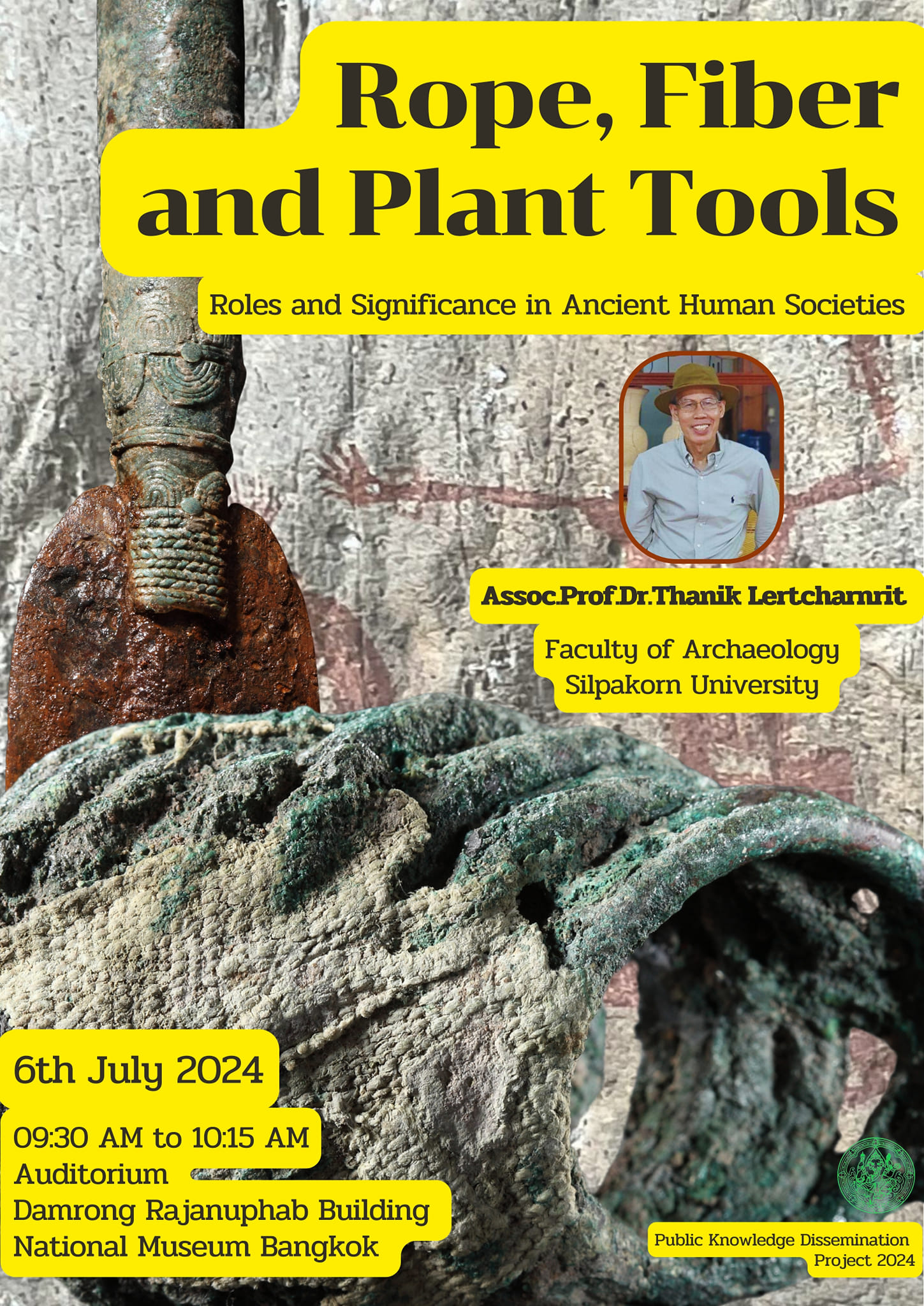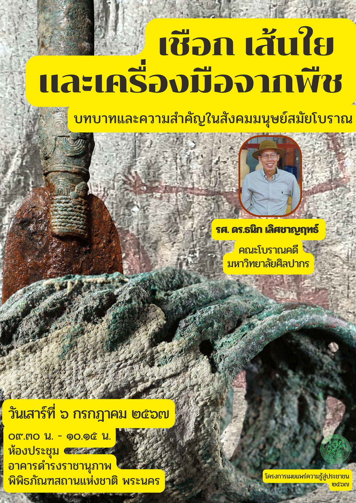 - การบรรยายทางวิชาการ เรื่อง"เชือก เส้นใย และเครื่องมือจากพืช : บทบาทและความสำคัญในสังคมมนุษย์สมัยโบราณ“วิทยากรโดย รศ. ดร.ธนิก เลิศชาญฤทธ์ คณะโบราณคดี มหาวิทยาลัยศิลปากร