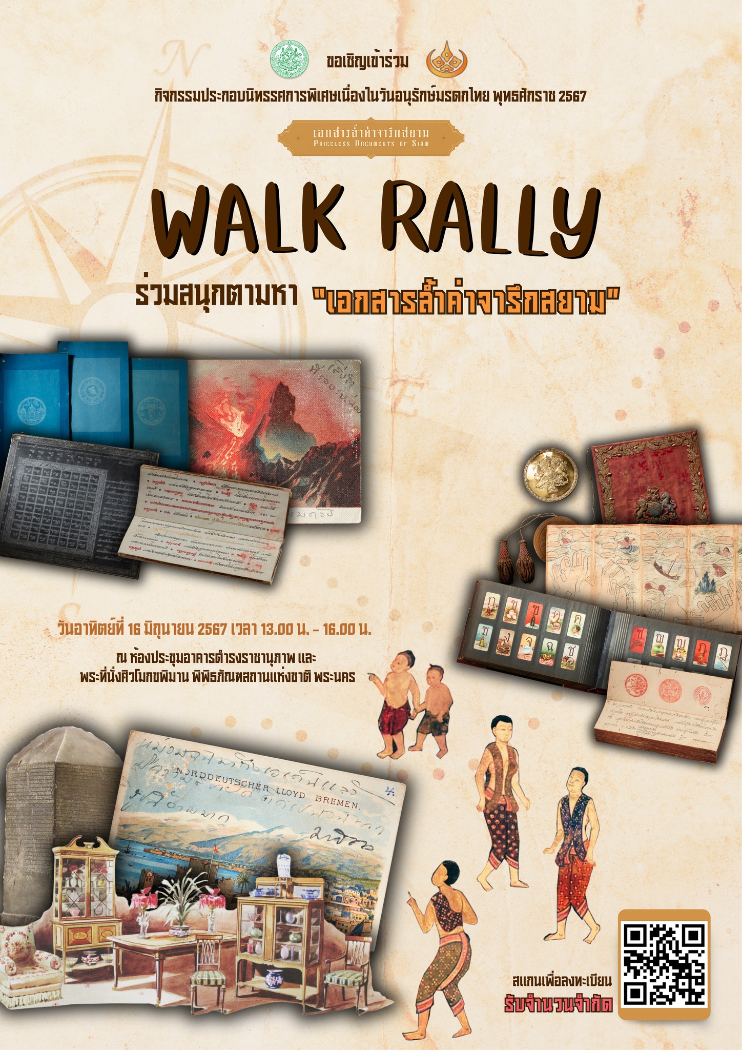 ขอเชิญลงทะเบียนสมัครเข้าร่วมกิจกรรม "WALK RALLY ร่วมสนุกตามหาเอกสารล้ำค่าจารึกสยาม"