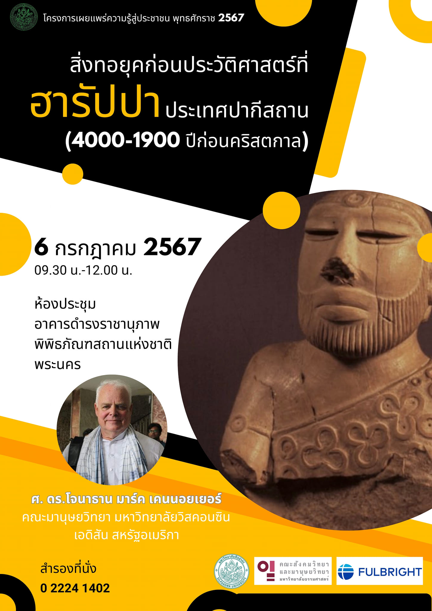 ๒. เรื่อง "สิ่งทอยุคก่อนประวัติศาสตร์ที่ฮารัปปา ประเทศปากีสถาน (๔๐๐๐ - ๑๙๐๐ ปีก่อนคริสตกาล)" โดย ศ. ดร.โจนาธาน มาร์ค เคนอยเยอร์ ภาควิชามานุษยวิทยา มหาวิทยาลัยวิสคอนซิน เมดิสัน สหรัฐอเมริกา