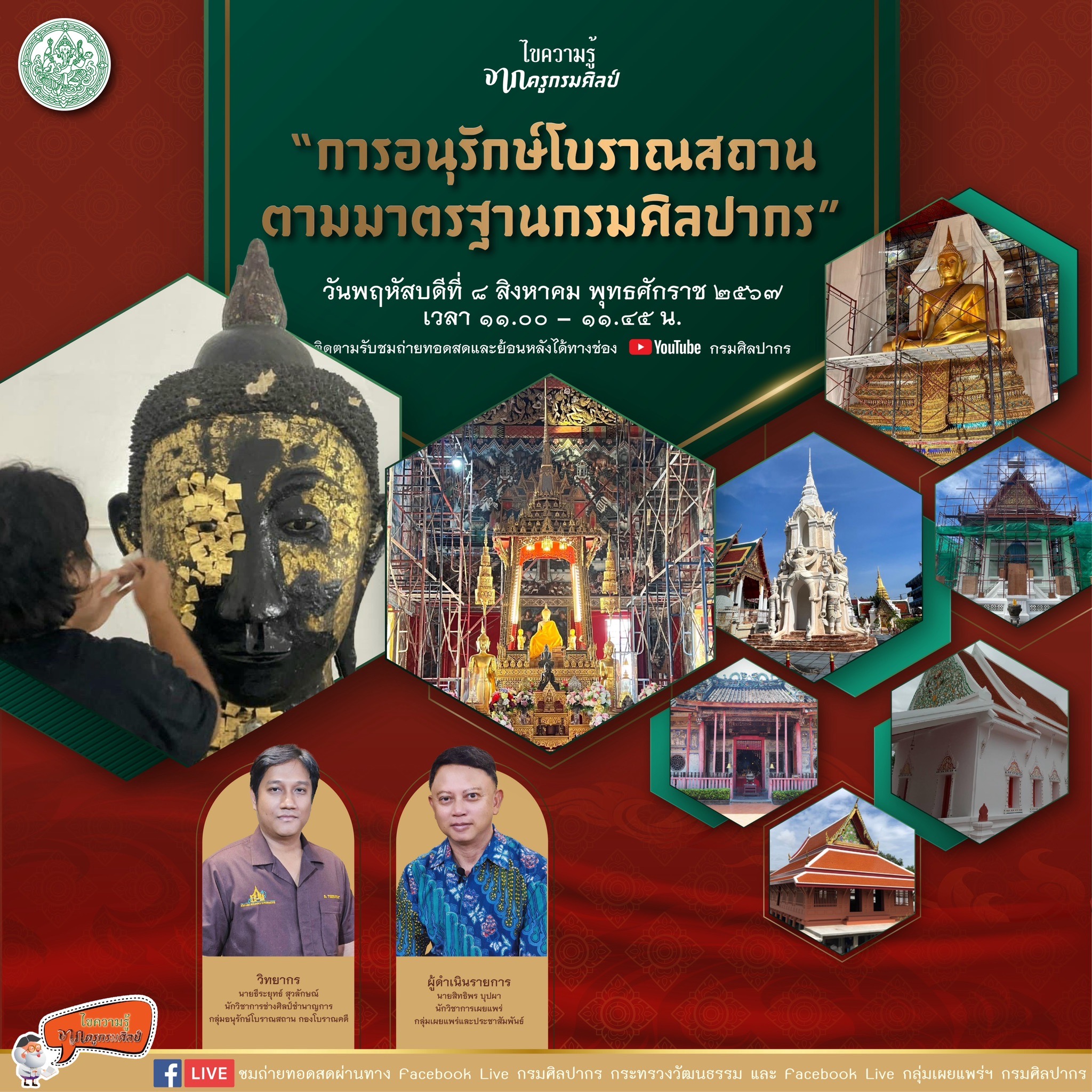 ขอเชิญชม Facebook Live รายการไขความรู้จากครูกรมศิลป์ ตอน “การอนุรักษ์โบราณสถานตามมาตรฐานกรมศิลปากร”