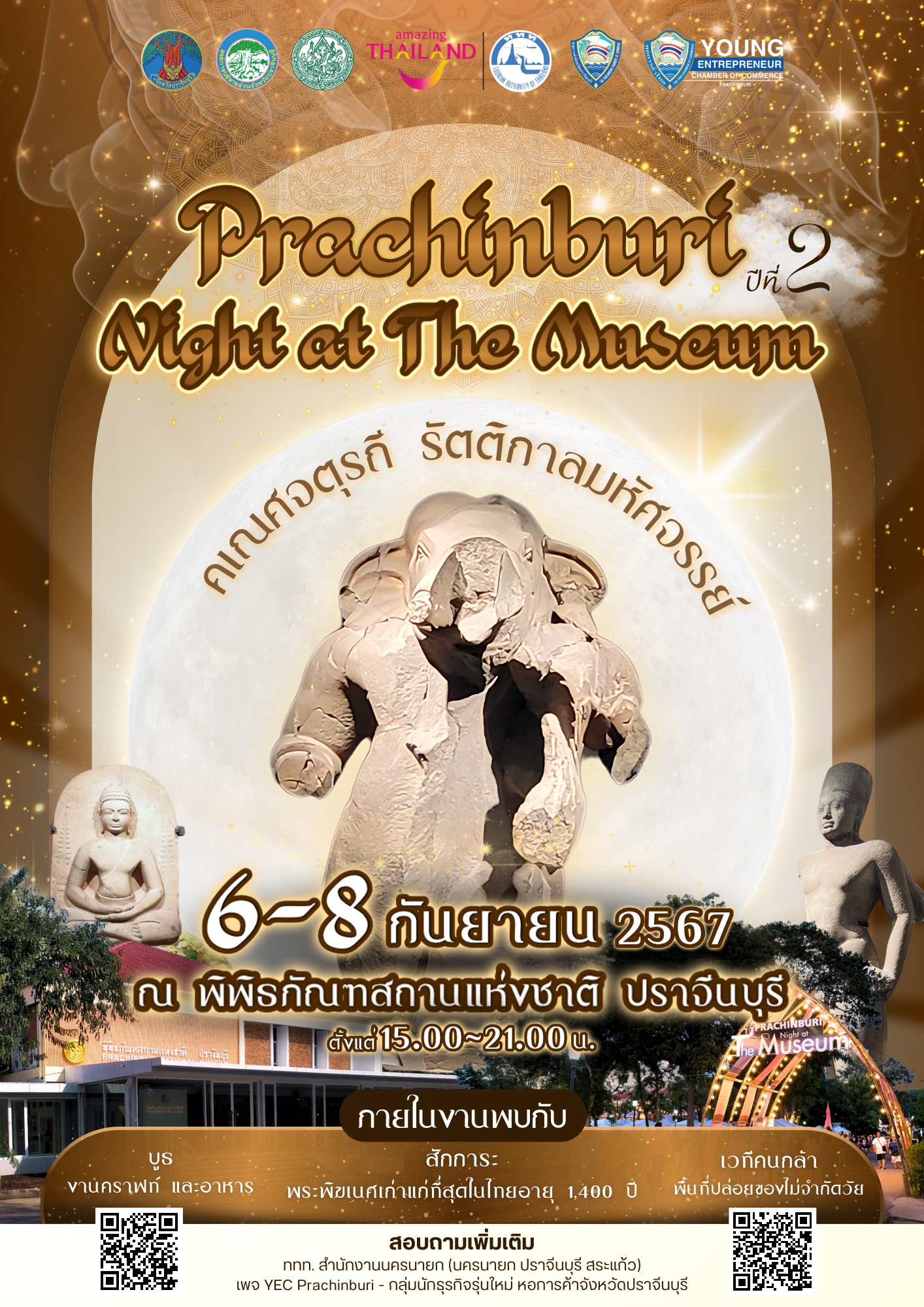 - กิจกรรม Museum Tour เข้าชมนิทรรศการภายในอาคารพิพิธภัณฑสถานแห่งชาติ ปราจีนบุรี ในเวลาพิเศษ 16.00 -21.00 น. (มีค่าเข้าชม)
