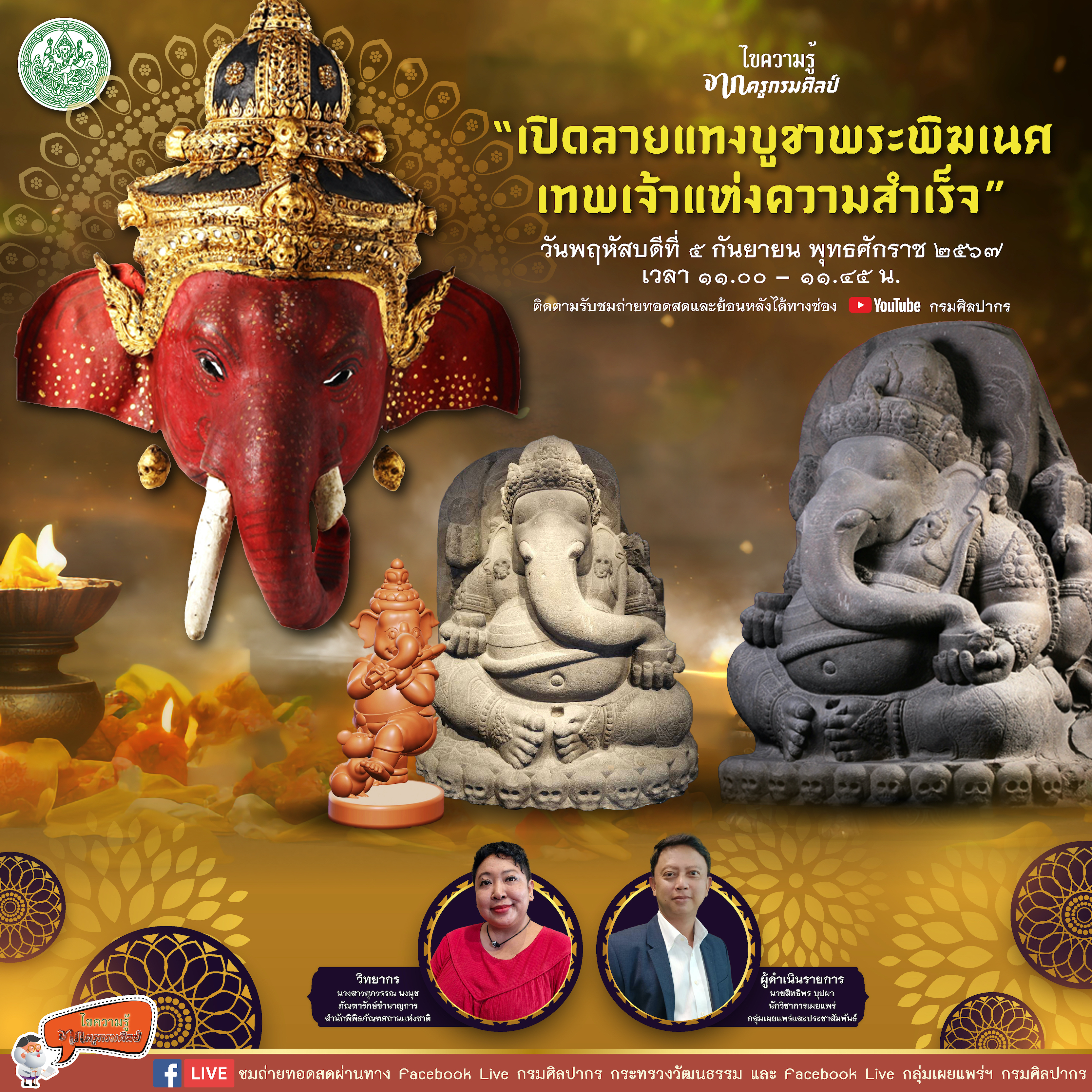 ขอเชิญชม Facebook Live รายการไขความรู้จากครูกรมศิลป์ “เปิดลายแทงบูชาพระพิฆเนศ เทพเจ้าแห่งความสำเร็จ”