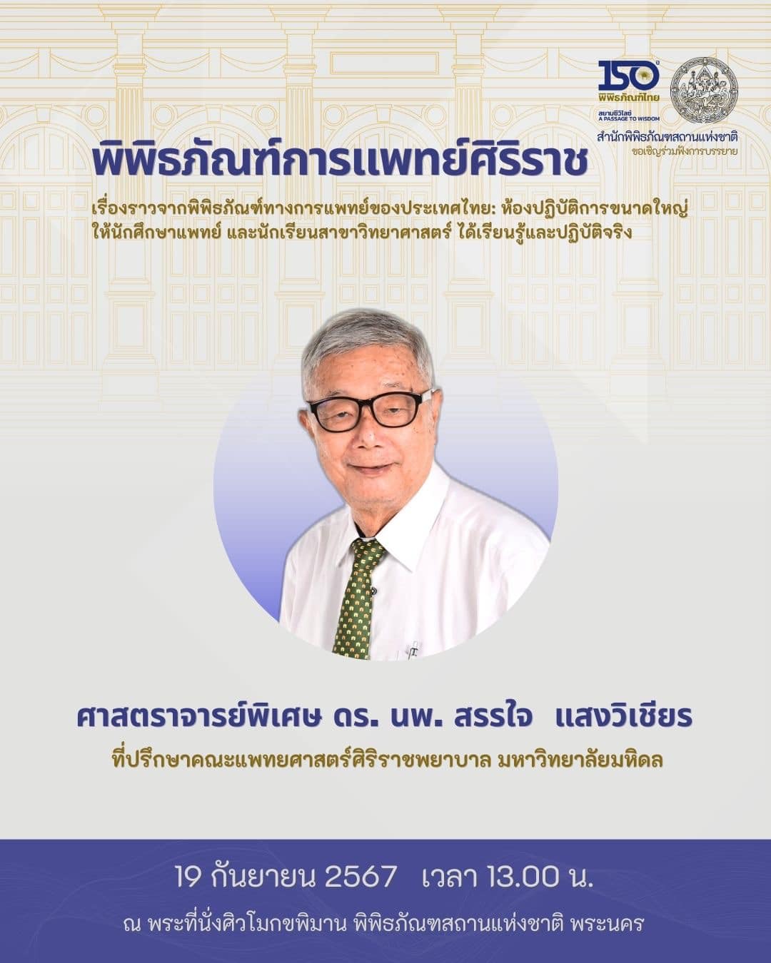 ขอเชิญร่วมฟังการเสวนาและบรรยาย “150 ปี พิพิธภัณฑ์ไทย สยามซิวิไลซ์ A Passage to Wisdom”