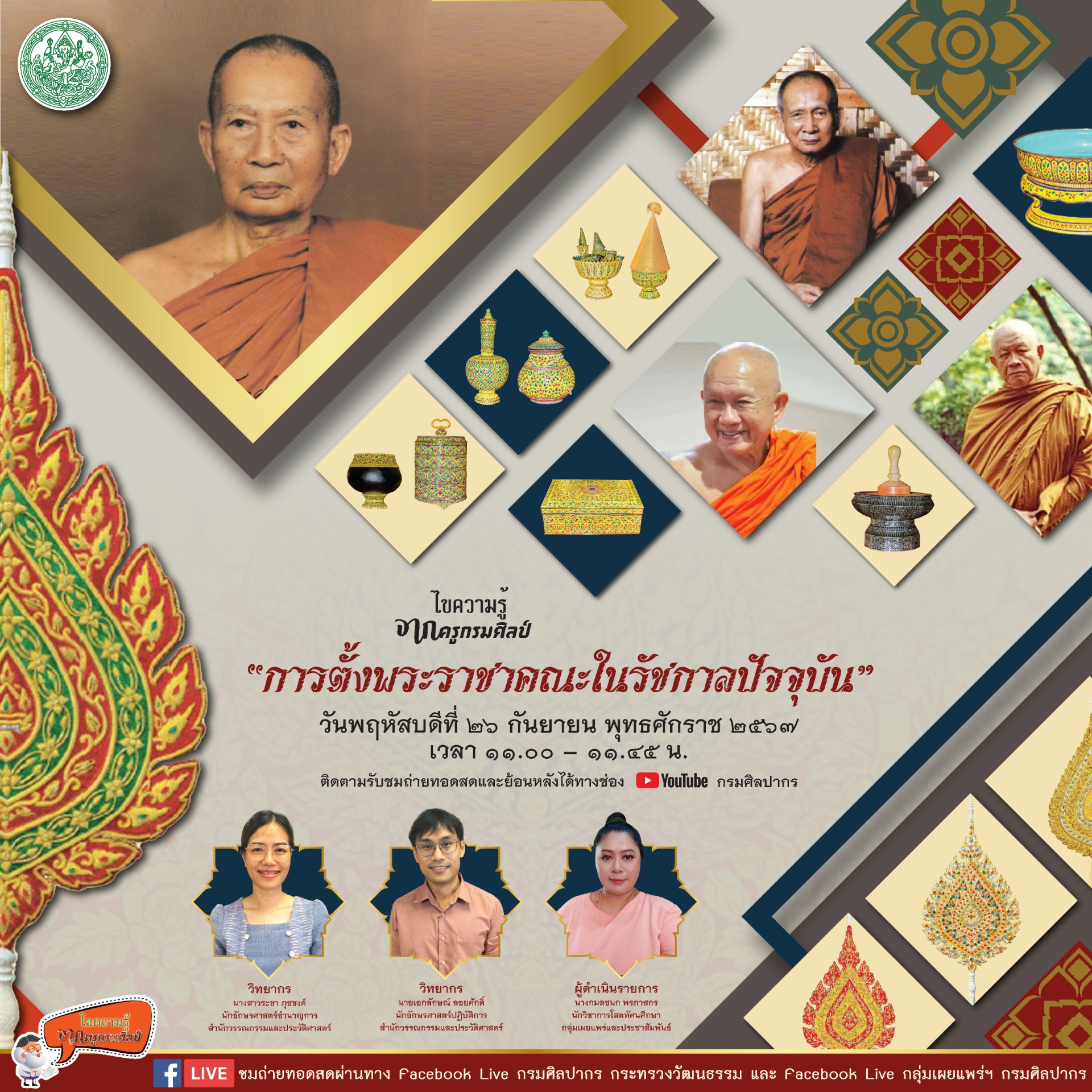 ขอเชิญชม Facebook Live รายการไขความรู้จากครูกรมศิลป์ ตอน “การตั้งพระราชาคณะในรัชกาลปัจจุบัน”