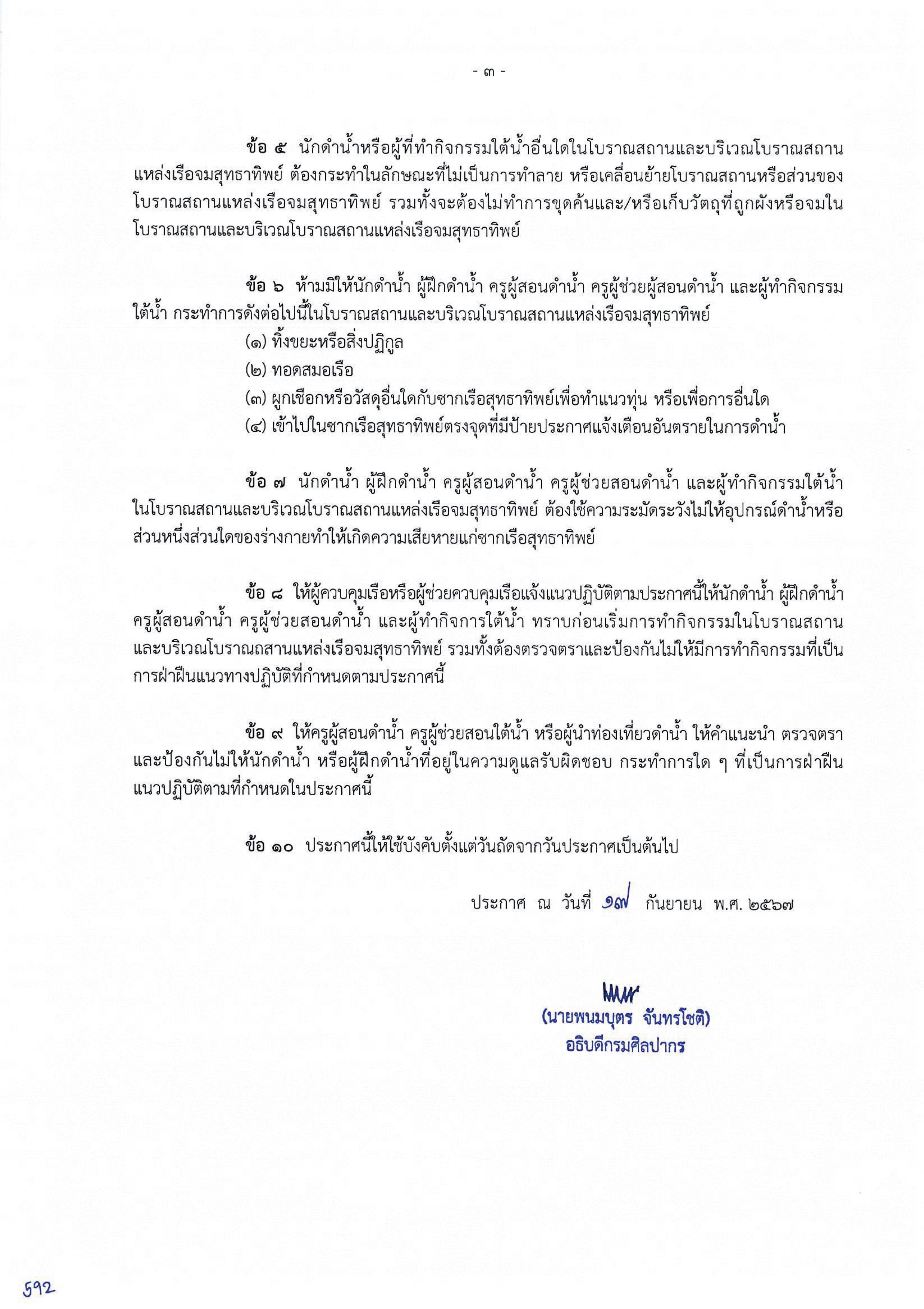 กองโบราณคดีใต้น้ำ ประกาศแนวทางการดำน้ำในแหล่งโบราณสถานเรือสุทธาทิพย์