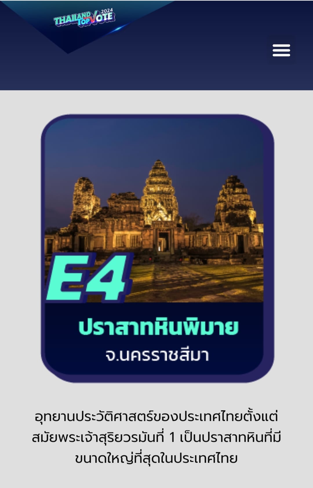 ขอเชิญร่วมโหวตให้ "E4 ปราสาทหินพิมาย" เป็น “สุดยอดสถานที่ท่องเที่ยวไทยแห่งปี”