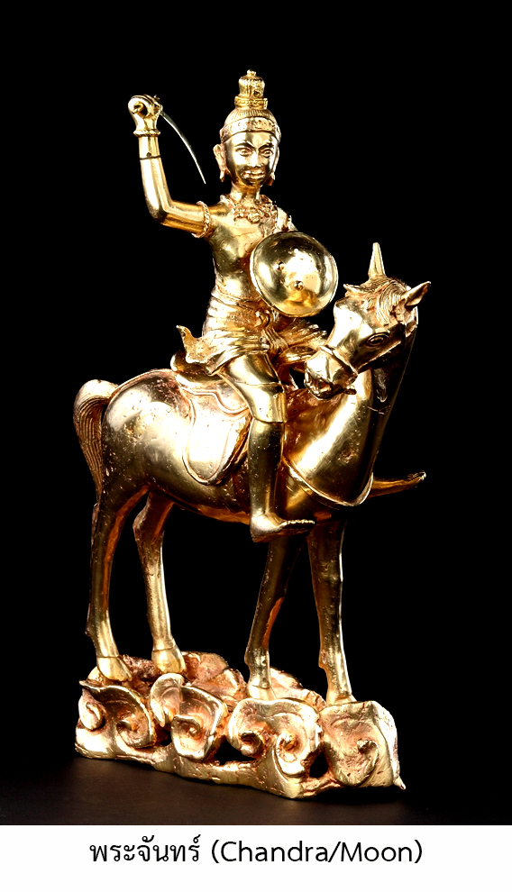 พระจันทร์ พระอิศวรทรงสร้างจากเทพธิดา ๑๕ นาง บดป่นเป็นผง ห่อผ้าสีขาวนวล พรมด้วยน้ำอมฤตได้บุรุษรูปงาม มีสีผิวกายขาวนวล ทรงอาชา (ม้า) เป็นพาหนะประจำอยู่ทิศตะวันออก เป็นเทพนพเคราะห์ประเภทศุภเคราะห์ มีอารมณ์อ่อนโยน เพ้อฝัน รวนเร และอาจมีเล่ห์เหลี่ยมมาก พระจันทร์เป็นมิตรกับพระพุธ และเป็นศัตรูกับพระพฤหัสบดี สัญลักษณ์เลข ๒ มีกำลังพระเคราะห์เป็น ๑๕