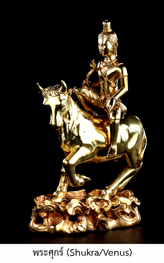 พระศุกร์ พระอิศวรทรงสร้างจากโค ๒๑ ตัว บดป่นเป็นผง ห่อด้วยผ้าสีฟ้าอ่อน พรมด้วยน้ำอมฤตเป็นพระศุกร์ มีผิวกายสีฟ้าทรงโคเป็นพาหนะ ประจำอยู่ทิศเหนือ เป็นเทพนพเคราะห์ประเภทศุภเคราะห์ กิริยาน่ารัก อ่อนหวาน ชอบงานศิลปะทุกประเภท เป็นมิตรกับพระอังคารและเป็นศัตรูกับพระเสาร์ สัญลักษณ์เลข ๖ มีกำลังพระเคราะห์เป็น ๒๑ พระศุกร์เป็นครูของเหล่ายักษ์