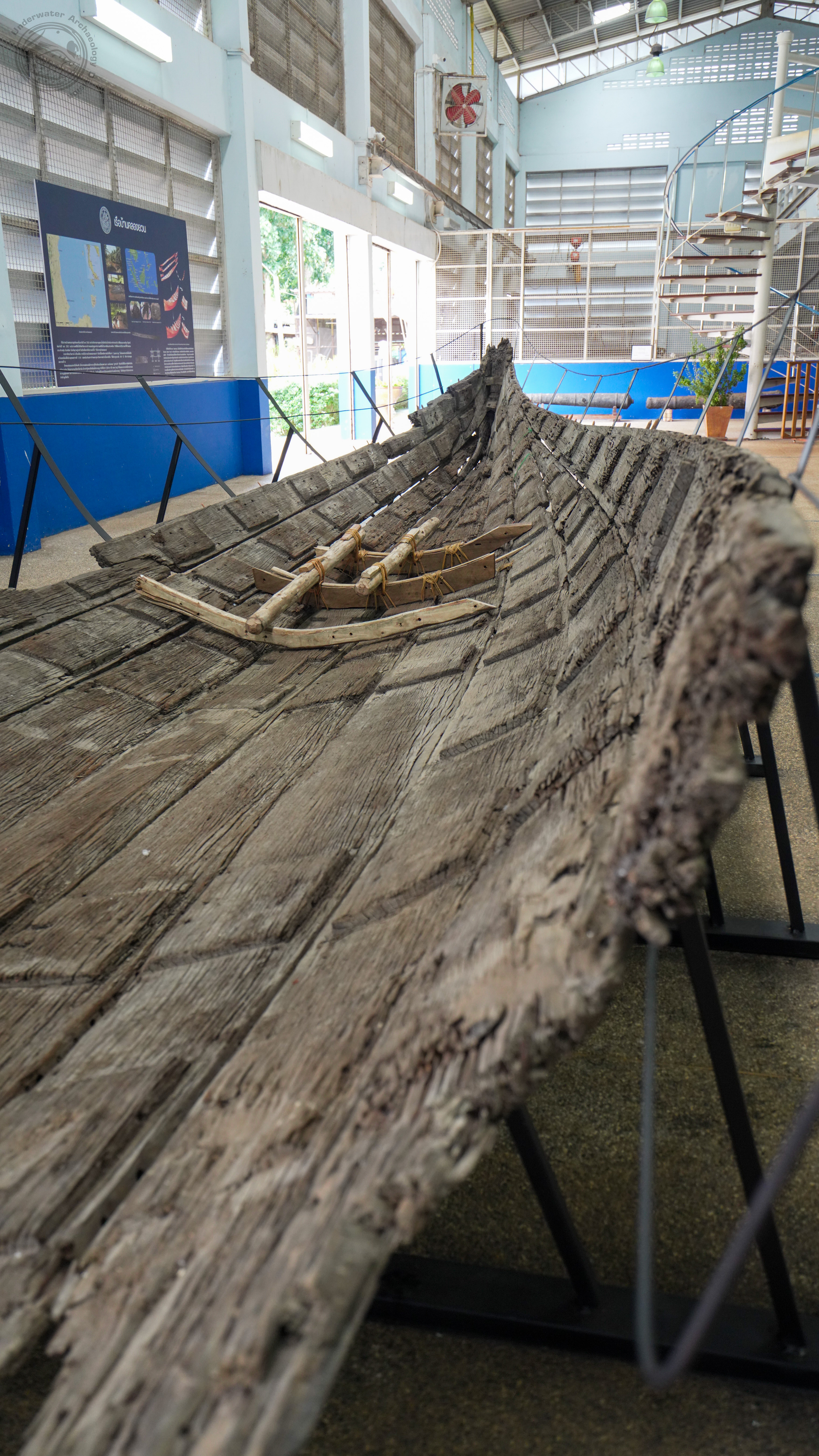 กองโบราณคดีใต้น้ำ ขอเชิญชมนิทรรศการพิเศษ เรื่อง “เรือโบราณบ้านคลองยวน: ซากเรือผูกแบบสันรูเจาะดั้งเดิมของประเทศไทย” จัดแสดงเรือโบราณลำจริง ที่ผ่านการคืนสภาพรูปทรงให้เหมือนเดิมมากที่สุด เพื่อเผยแพร่ให้สาธารณชนและผู้สนใจได้เห็นรูปร่างเดิมของเรือพื้นถิ่นของประเทศไทย ย้อนกลับไปในปี พ.ศ. 2545 เมื่อซากเรือลำนี้ถูกค้นพบครั้งแรกจากการขุดสระน้ำในสวนปาล์มของนางพรพิมล มีนุสรณ์ โดยถูกกู้ซากขึ้นมาเก็บรักษาไว้เป็นอย่างดี บันทึกเท่าที่เหลืออยู่ระบุเพียงขนาดซากตัวเรือเมื่อครั้งแรกที่พบ ซึ่งมีความยาว 15 เมตรและกว้าง 3.5 เมตร โดยไม่ปรากฏภาพถ่ายเก่าใดๆ ต่อมาจนกระทั่งปี พ.ศ. 2557 เรือลำนี้ปรากฏอยู่ในบันทึกการสำรวจทางโบราณคดีเพื่อจัดทำวิทยานิพนธ์มหาบัณฑิตของนางสาวเพลงเมธา ขาวหนูนา ซึ่งปัจจุบันเป็นนักโบราณคดีชำนาญการที่สำนักศิลปากรที่ 11 สงขลา ในตอนนั้นซากตัวเรือไม่เหลือเค้าเดิมของเรือแต่อย่างใด สิ่งเดียวที่บ่งบอกความเป็นเรือคือส่วนทวนหัวและทวนท้าย โดยชิ้นส่วนอื่นๆถูกวางซ้อนทับกันและเก็บรักษาไว้ในศาลากลางสวนปาล์ม จนกระทั่งกองโบราณคดีใต้น้ำจัดโครงการสำรวจแหล่งโบราณคดีภาคใต้ และทราบข่าวการค้นพบเรือโบราณที่บ้านคลองยวน เมื่อตรวจสอบถึงพบว่าเรือลำนี้ใช้เทคนิคการต่อที่เก่าแก่ อาจมีอายุถึง 1,000 ปี จึงได้ขอซากตัวเรือมาศึกษา อนุรักษ์ และมีจุดหมายหลักคือการประกอบคืนรูปทรงเพื่อจัดแสดง