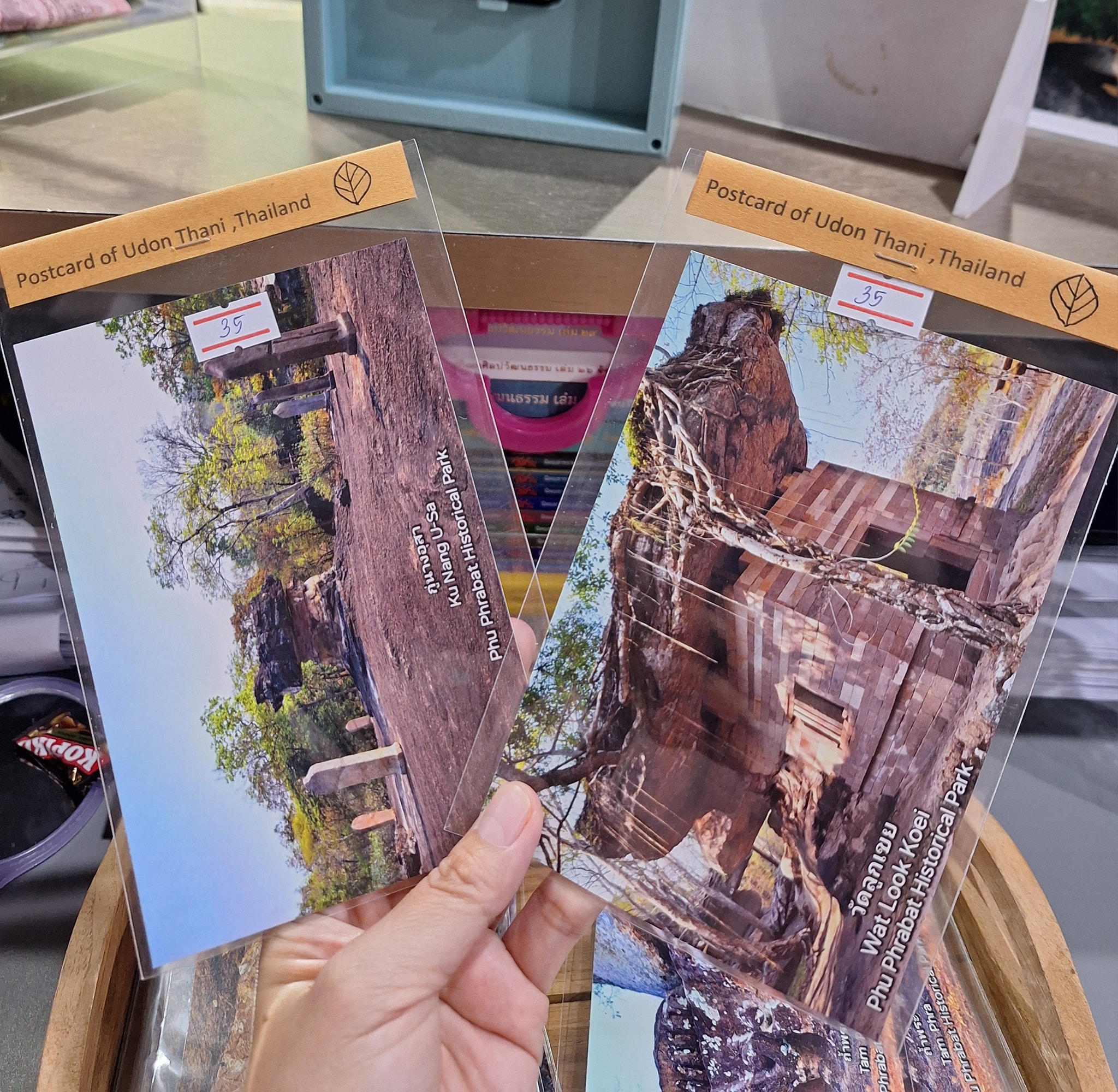 ไปรษณียบัตร (POSTCARD) รูปภาพโบราณสถานภายในอุทยานประวัติศาสตร์ภูพระบาท เช่น หอนางอุสา, ถ้ำคน, วัดลูกเขย, ถ้ำพระ, กู่นางอุสา ราคา 35 บาท