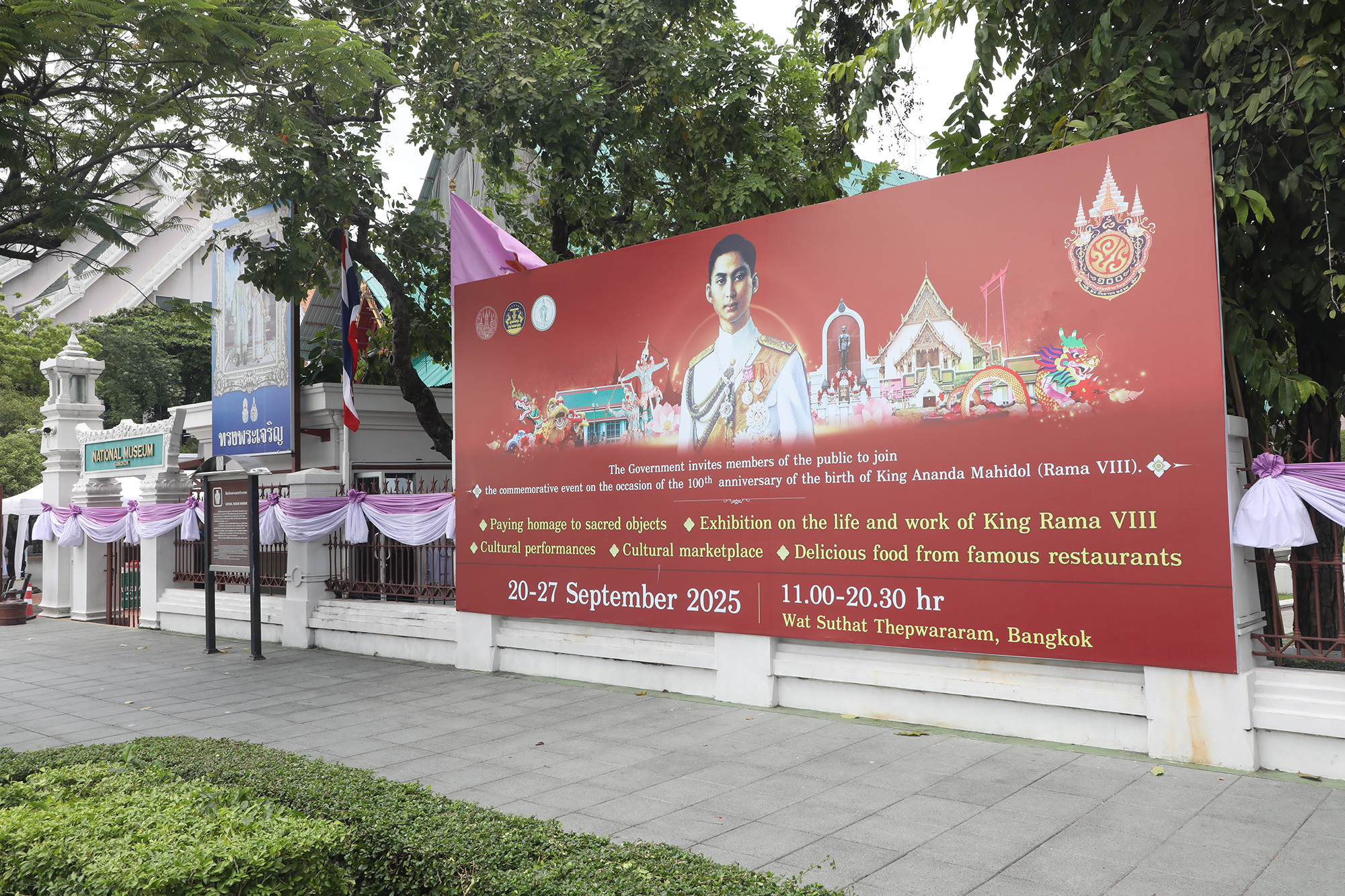 วันอังคารที่ ๒๓ กันยายน พุทธศักราช ๒๕๖๘ เวลา ๑๔.๓๐ น. สมเด็จพระกนิษฐาธิราชเจ้า กรมสมเด็จพระเทพรัตนราชสุดาฯ สยามบรมราชกุมารี เสด็จพระราชดำเนินไปทรงเปิดนิทรรศการเฉลิมพระเกียรติ พระบาทสมเด็จพระปรเมนทรมหาอานันทมหิดล พระอัฐมรามาธิบดินทร เนื่องในโอกาสวันคล้ายวันพระบรมราชสมภพ ครบ ๑๐๐ ปี ๒๐ กันยายน ๒๕๖๘ ณ พิพิธภัณฑสถานแห่งชาติ พระนคร โดยมีท่านผู้หญิงสิริกิติยา เจนเซน นายพนมบุตร จันทรโชติ อธิบดีกรมศิลปากร นายฐาปน สิริวัฒนภักดี ประธานเจ้าหน้าที่บริหาร บริษัท ไทยเบฟเวอเรจ จำกัด (มหาชน) นายนิติกร กรัยวิเชียร ผู้อำนวยการโครงการส่งเสริมศิลปวัฒนธรรม บริษัท ไทยเบฟเวอเรจ จำกัด (มหาชน) ผู้บริหารและข้าราชการกระทรวงวัฒนธรรม กรมศิลปากร เฝ้าฯ รับเสด็จ