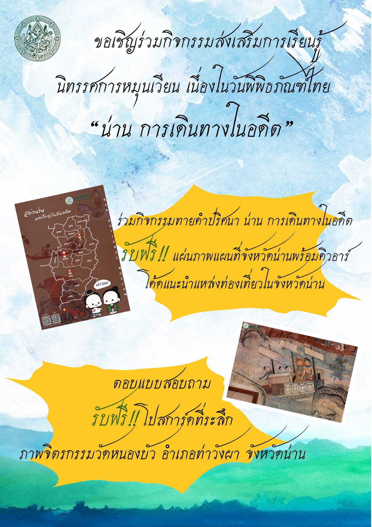 ขอเชิญชมนิทรรศการหมุนเวียน เรื่อง "น่าน การเดินทางในอดีต" ณ พิพิธภัณฑสถานแห่งชาติ น่าน