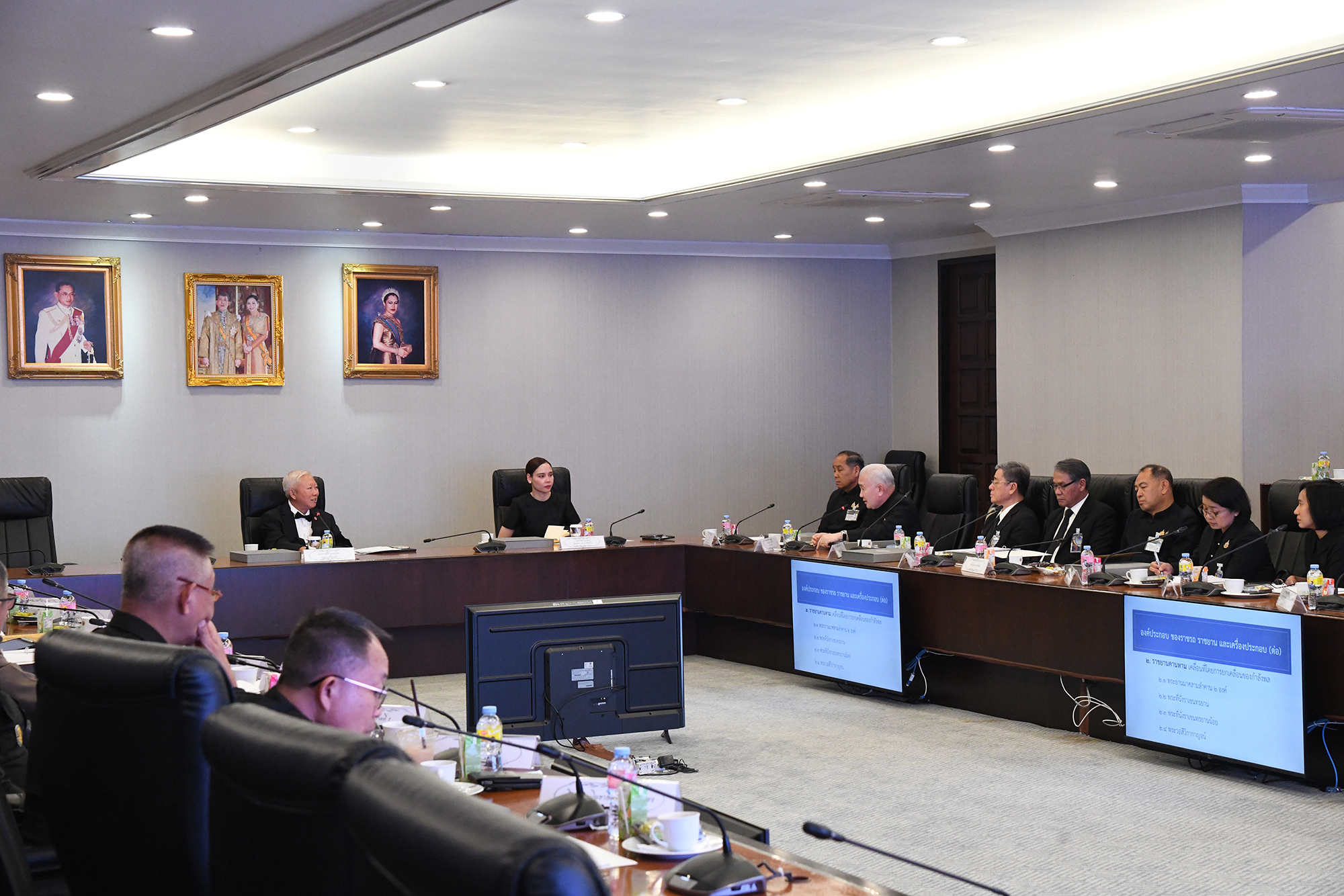 ๒. แผนการดำเนินงานการบูรณปฏิสังขรณ์ราชรถ พระยานมาศ และเครื่องประกอบงานพระราชพิธีถวายพระเพลิงพระบรมศพ สมเด็จพระนางเจ้าสิริกิติ์พระบรมราชินีนาถ พระบรมราชชนนีพันปีหลวง มอบหมายให้กรมศิลปากร กระทรวงวัฒนธรรมร่วมกับกรมสรรพาวุธทหารบก กรมอู่ทหารเรือ กระทรวงกลาโหม ดำเนินงานบูรณะราชรถ ราชยาน และเครื่องประกอบทุกองค์ ทั้งนี้จากการสำรวจเบื้องต้น สภาพปัจจุบันของราชรถ ราชยาน มีสีหมองคล้ำ มีคราบสกปรกฝังลึก ทองที่ปิดหลุดลอก ชิ้นส่วนประดับตกแต่งชำรุด ซึ่งจะดำเนินงานบูรณะตามลำดับ ได้แก่ งานซ่อมสงวนรักษาโครงสร้างช่วงล่างและระบบขับเคลื่อน โดยกรมสรรพาวุธทหารบก งานทำความสะอาดพื้นผิวราชรถ ราชยาน ด้วยกระบวนการงานทางวิทยาศาสตร์ โดยสำนักพิพิธภัณฑสถานแห่งชาติ กรมศิลปากร งานบูรณะซ่อมแซมงานตกแต่งศิลปกรรมและประณีตศิลป์ โดย สำนักช่างสิบหมู่ กรมศิลปากร งานจัดทำเชือกลากราชรถ โดยกองเรือพระราชพิธี กองทัพเรือ ทั้งนี้ หน่วยงานที่เกี่ยวข้องจะได้บูรณาการการทำงานร่วมกัน โดยคาดว่างานทั้งหมดจะแล้วเสร็จในเดือนตุลาคม ๒๕๖๙