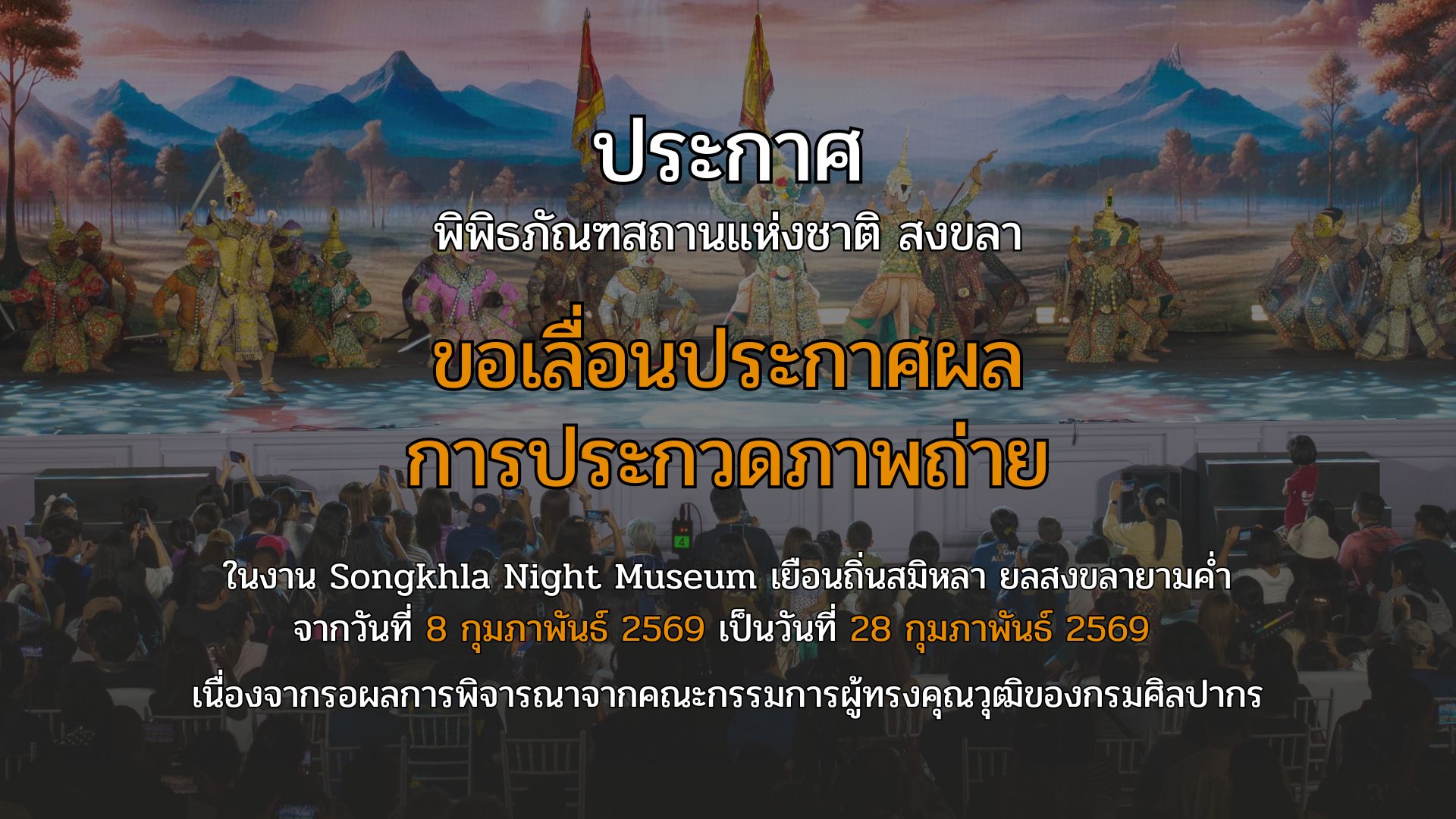 เลื่อนประกาศผลการประกวดภาพถ่าย Songkhla Night Museum จาก 8 ก.พ. เป็น 28 ก.พ. 69