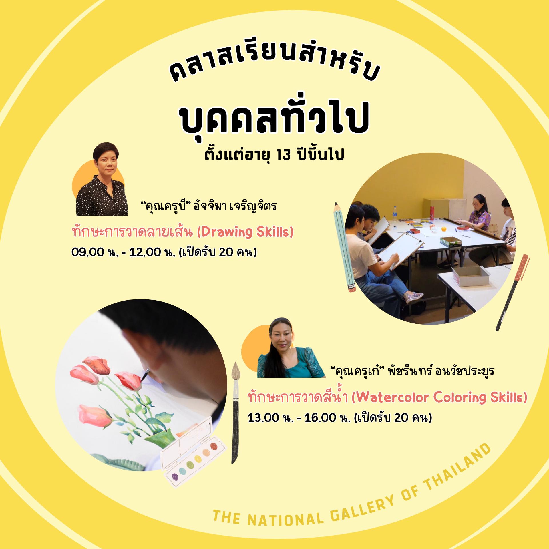 เอกสารที่ใช้ในการสมัคร 1. รูปถ่าย 1 นิ้ว จำนวน 1 ใบ 2. สำเนาบัตรประชาชน หรือสำเนาทะเบียนบ้านของผู้เข้ารับการอบรม 3. ค่าลงทะเบียนคนละ 2,200 บาท /คน/คอร์ส (รับเฉพาะเงินสด) ผู้สนใจสามารถสมัครด้วยตนเองและชำระเงินที่พิพิธภัณฑสถานแห่งชาติ หอศิลปเท่านั้น ในกรณีคลาสเรียนสำหรับเด็ก ผู้ปกครองสามารถมาสมัครแทนได้ (*ไม่รับโอนเงิน / ไม่รับสมัครออนไลน์ทุกกรณี กรุณาตรวจสอบตารางเรียนก่อนสมัคร หากยืนยันแล้วไม่สามารถเปลี่ยนคอร์ส และขอสงวนสิทธิ์คืนเงินทุกกรณี)