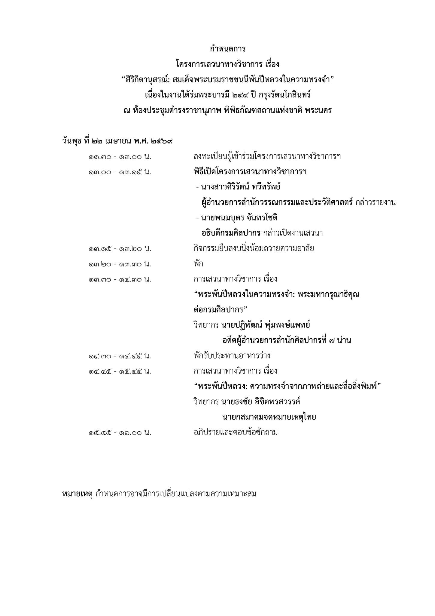 ขอเชิญฟังเสวนาทางวิชาการ “สิริกิตานุสรณ์: สมเด็จพระบรมราชชนนีพันปีหลวงในความทรงจำ”