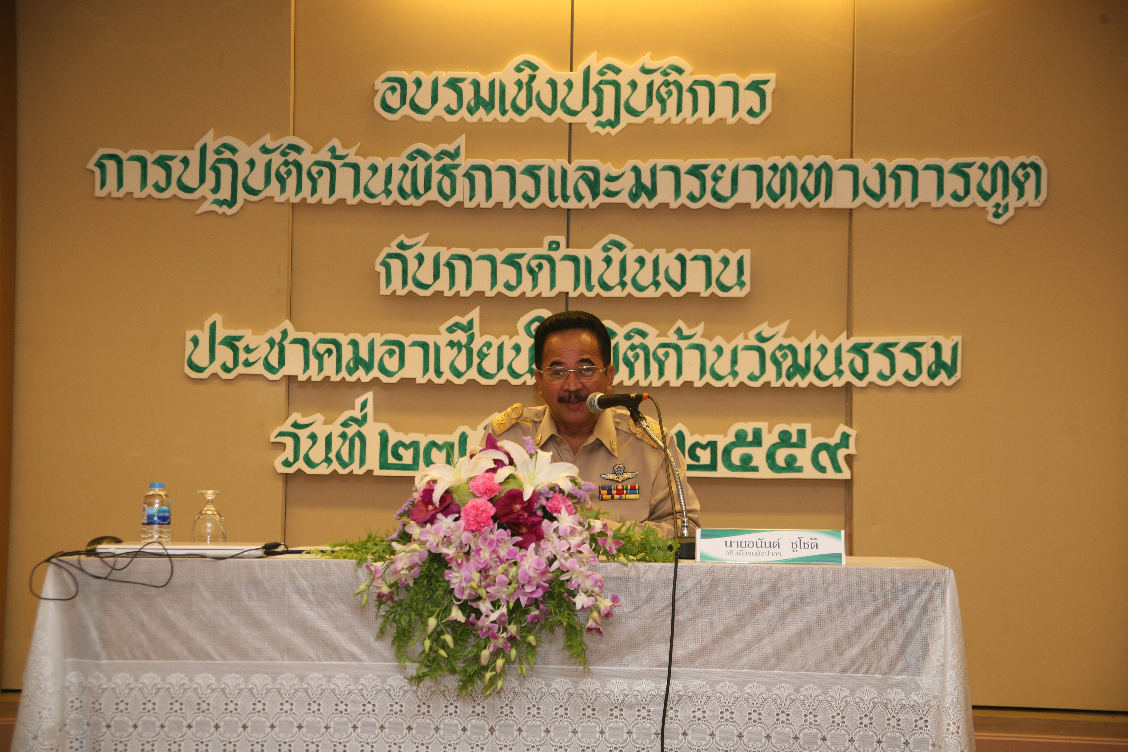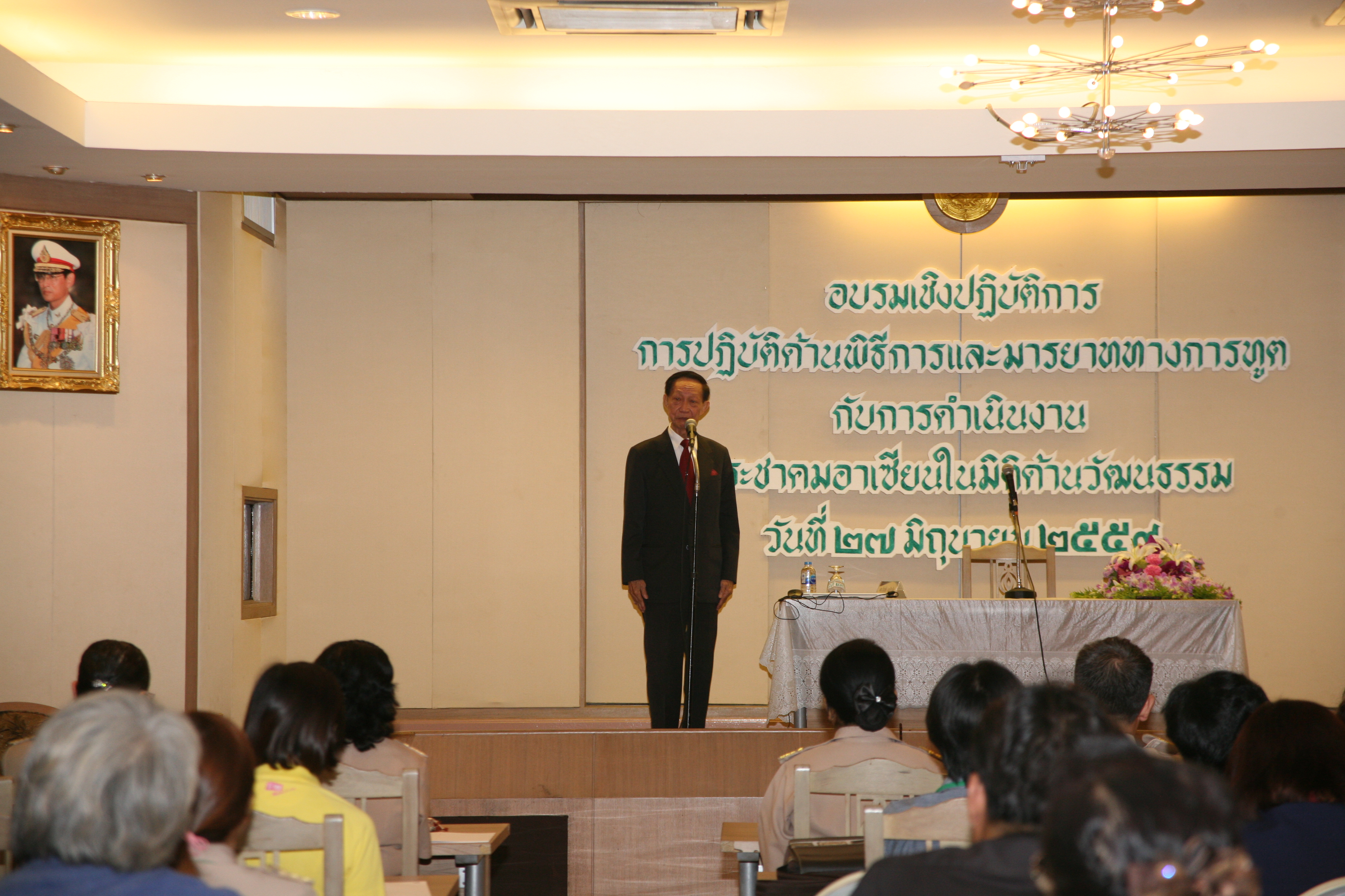 พิธีเปิดการอบรมเชิงปฎิบัติการด้านพิธีการและมารยาททางการทูตฯ (27 มิ.ย.59)