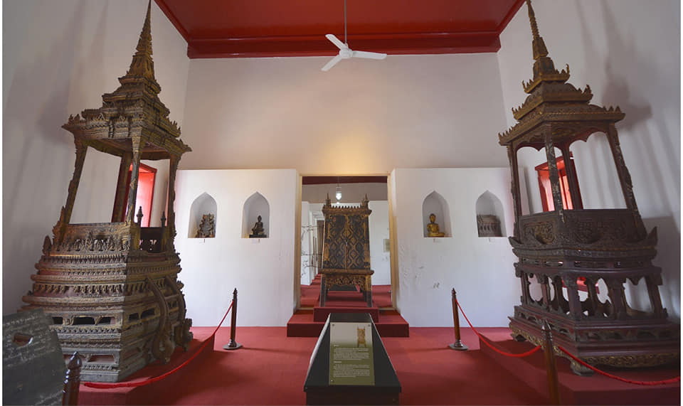 พระราชวังเมืองละโว้หรือลพบุรี ปัจจุบันเป็นพิพิธภัณฑสถานแห่งชาติ สมเด็จพระนารายณ์ กรมศิลปากร จัดแสดงโบราณวัตถุที่เกี่ยวข้องกับประวัติศาสตร์ โบราณคดีของจังหวัดลพบุรี โดยเฉพาะพระที่นั่งจันทรพิศาล จัดแสดงนิทรรศการถาวรเฉลิมพระเกียรติสมเด็จพระนารายณ์มหาราช ภาพประวัติศาสตร์เหตุการณ์สำคัญ และโบราณวัตถุในรัชสมัยสมเด็จพระนารายณ์มหาราช อาทิ ภาพวาดสมเด็จพระนารายณ์มหาราชรับพระราชสาสน์ของพระเจ้าหลุยส์ที่ 14, เหรียญที่ระลึกในโอกาสราชทูตสยามเข้าเฝ้าพระเจ้าหลุยส์ที่ 14, ธรรมาสน์ไม้ มีจารึกระบุศักราชการสร้างในสมัยสมเด็จพระนารายณ์มหาราช เป็นต้น.jpg)