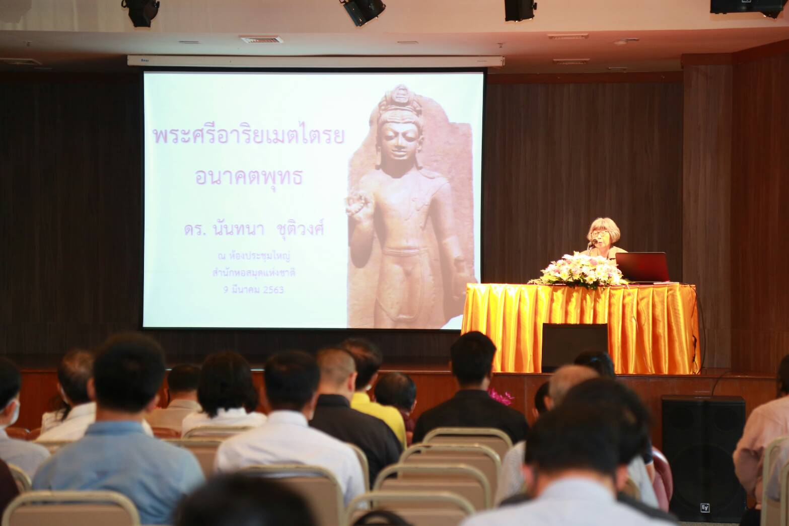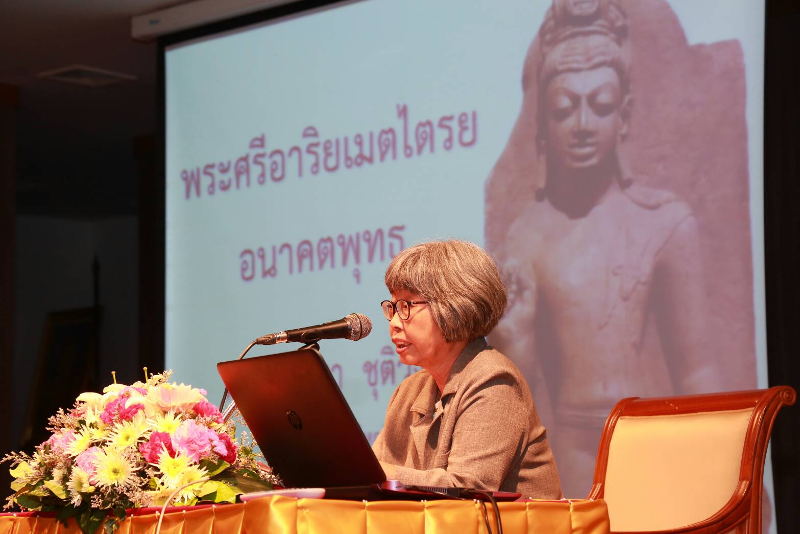 ประติมากรรมพระศรีอารยเมตไตรย หรือ พระโพธิสัตว์ ไมเตรยะ แสดงถึงอิทธิพลทางศาสนาที่สะท้อนให้เห็นถึงวิถีชีวิตของผู้คนในชุมชน ซึ่งเป็นหลักฐานทางประวัติศาสตร์ศิลปะสำคัญที่พบอยู่เป็นจำนวนมาก อันจะบอกเล่าเรื่องราว และแสดงให้เห็นถึงการถ่ายทอดทางศาสนา และศิลปวัฒนธรรมระหว่างดินแดนต่าง ๆ ในภูมิภาคตะวันออก ทั้งในดินแดนประเทศไทยเอง และประเทศที่เป็นแหล่งอารยธรรมสำคัญของโลกตะวันออก เช่น อินเดีย จีน เกาหลี ญี่ปุ่น ซึ่งกรมศิลปากรได้เชิญนักวิชาการ ผู้ทรงคุณวุฒิ ที่มีความรู้ ความเชี่ยวชาญ เกี่ยวกับโบราณวัตถุและประติมานวิเคราะห์ของพระศรีอารยเมตไตรย หรือ พระโพธิสัตว์ ไมเตรยะ มาร่วมบรรยาย และแลกเปลี่ยนข้อมูลทางวิชาการ โดยเฉพาะข้อมูลที่เกี่ยวข้องหรือแสดงถึงคติ แนวคิด การติดต่อสัมพันธ์ รับและแลกเปลี่ยนทางวัฒนธรรมกันมาอย่างยาวนานแต่โบราณ โดยช่วงเช้าเป็นการบรรยาย เรื่อง “พระศรีอาริยเมตไตรย อนาคตพุทธ” โดย ดร. นันทนา ชุติวงศ์ ช่วงบ่าย เป็นการเสวนาทางวิชาการเรื่อง “พระศรีอารยเมตไตรย-พระโพธิสัตว์ไมเตรยะ:จากต่างแดนสู่สุวรรณภูมิ” โดย ดร. อมรา ศรีสุชาติ ผู้ทรงคุณวุฒิด้านโบราณคดี กรมศิลปากร ผศ. ดร. ชานป์วิชช์ ทัดแก้ว คณะอักษรศาสตร์ จุฬาลงกรณ์มหาวิทยาลัย นายเดชา สุดสวาท ผู้อำนวยการกลุ่มโบราณคดี สำนักศิลปากรที่ ๔ ลพบุรี ดำเนินการเสวนา โดย นางสาวศุภวรรณ นงนุช ภัณฑารักษ์ชำนาญการ สำนักพิพิธภัณฑสถานแห่งชาติ