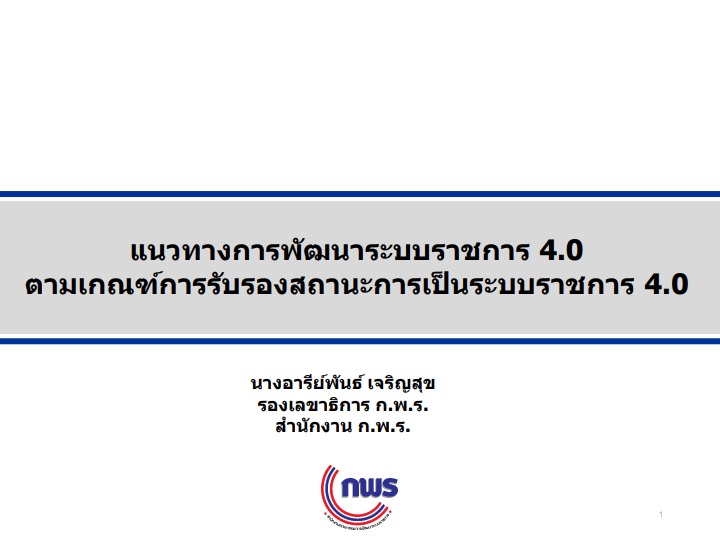 แนวทางการพัฒนาระบบราชการ 4.0 ตามเกณฑ์การรับรองสถานะการเป็นระบบราชการ 4.0