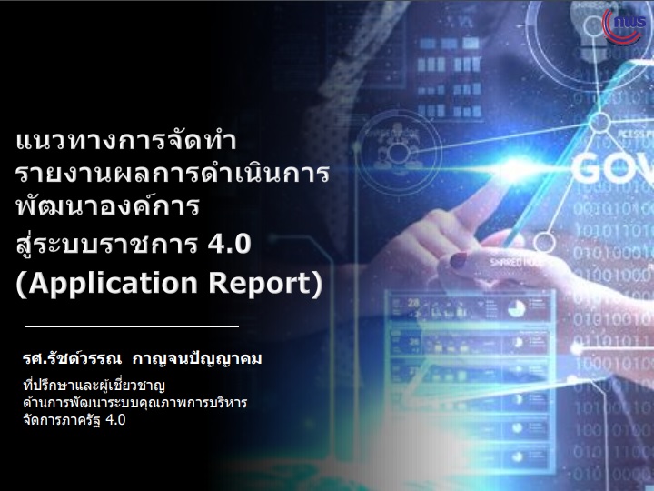 แนวทางการจัดทำรายงานผลการดำเนินการพัฒนาองค์การสู่ระบบราชการ 4.0 (Application Report) โดย รศ. รัชต์วรรณ กาญจนปัญญาคม