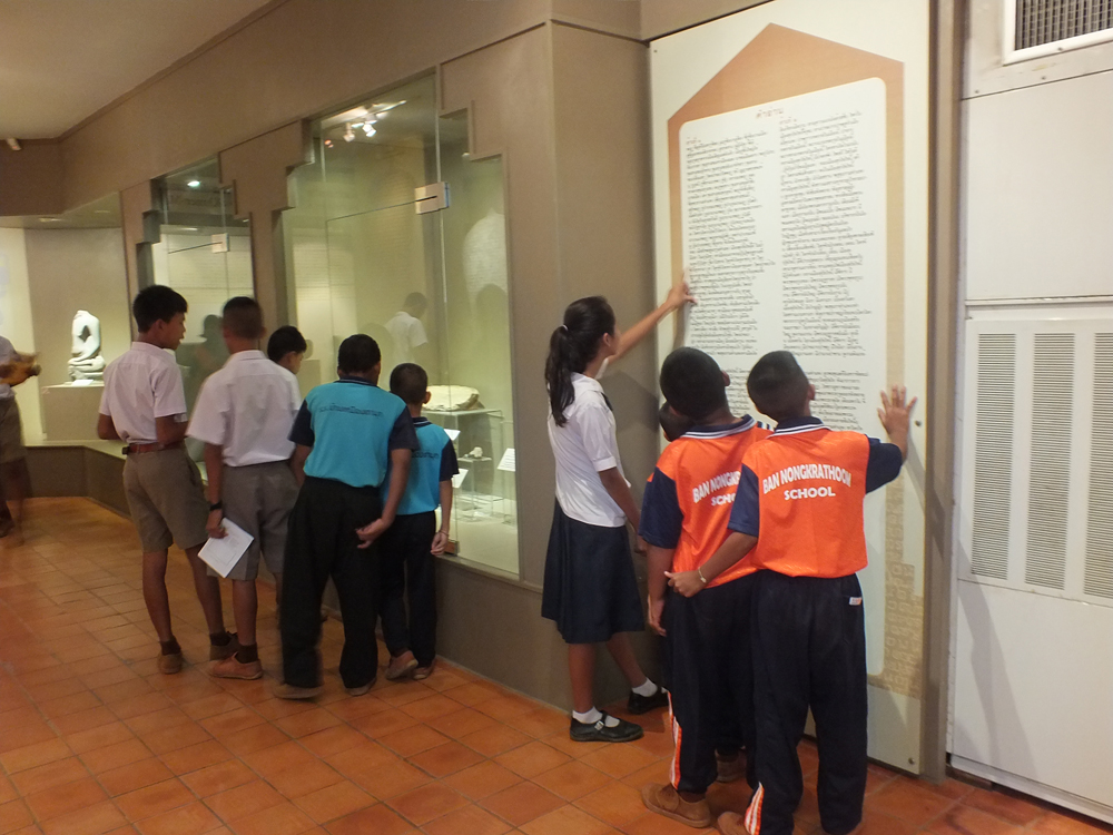 บรรยากาศการจัดกิจกรรมลดเวล าเรียน เพิ่มเวลารู้ สนุกกับประวัติศาสตร์สุโขทั ย ณ พิพิธภัณฑสถานแห่งชาติ รามคำแหง วันที่ ๒๒ กรกฎาคม ๒๕๕๙ ซึ่งในภาคเช้ามีนักเรียนจาก โรงเรียนบ้านสามหลัง โรงเรียนบ้านหนองกระทุ่ม บ้านเหมืองตามุกและบ้านดอนร ะเบียง จ.สุโขทัย จำนวน ๑๑๖ คนเข้าร่วมสนุกกับกิจกรรม Walk Rally ชวนน้องเล่นสนุกกับพิพิธภัณ ฑสถานแห่งชาติ รามคำแหงด้วยความสนุกสนาน